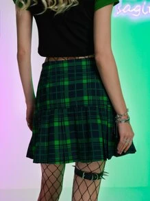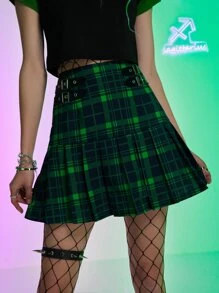 Faltenrock mit Plaid Muster, Tülle Öse
