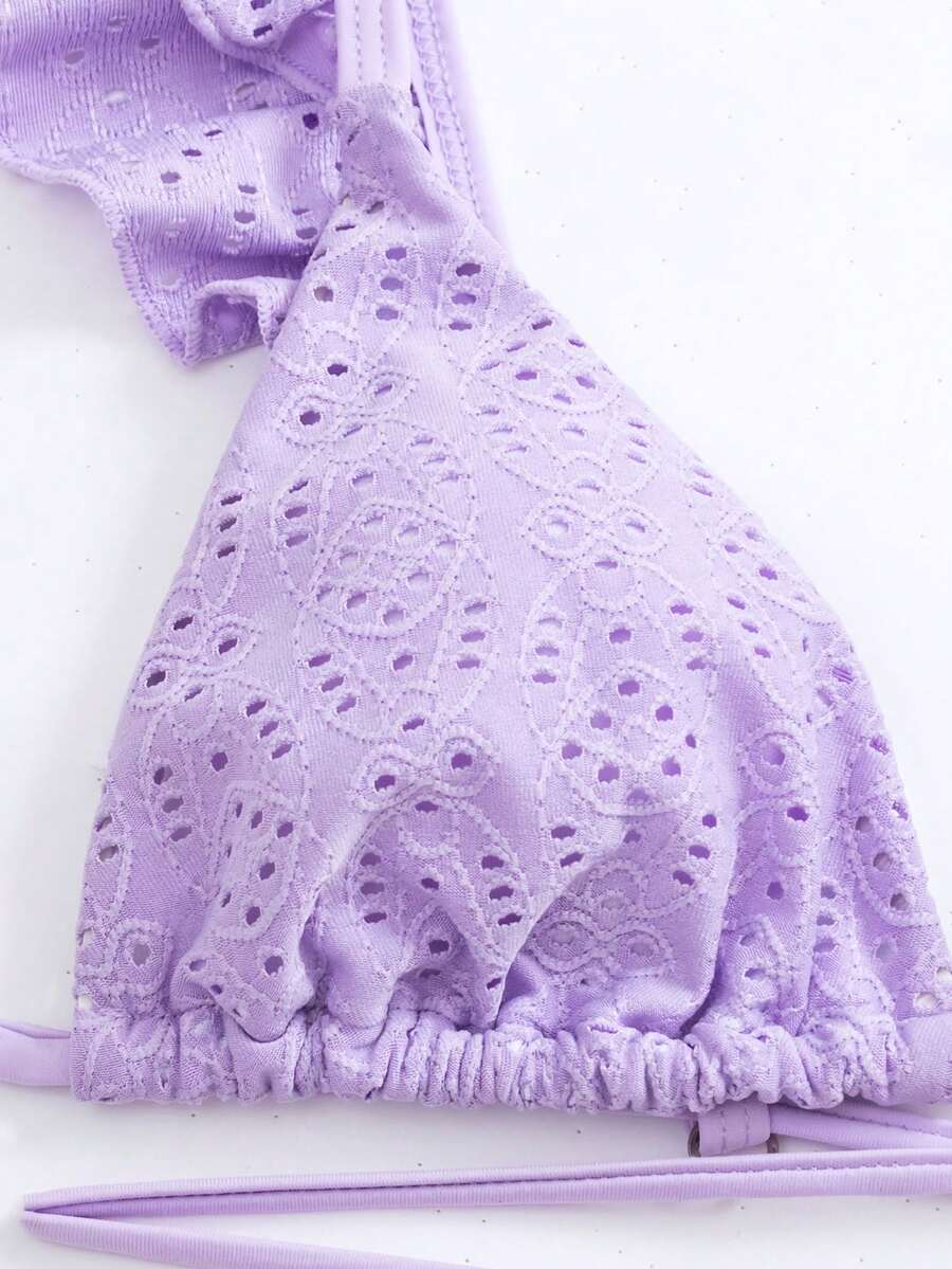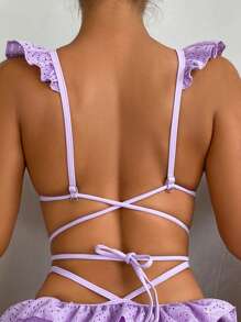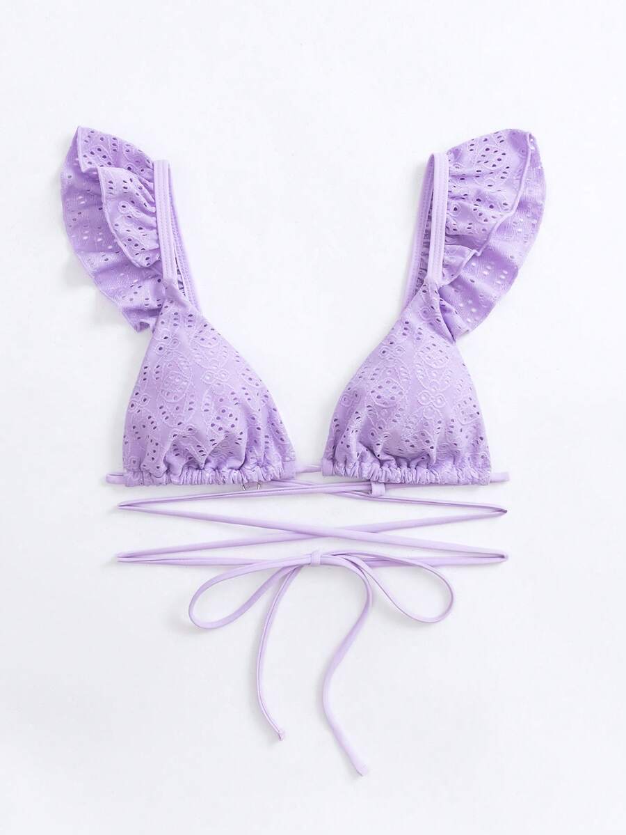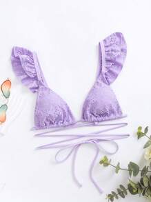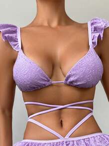 Triangel Bikini Top mit Schiffy Rüschenbesatz, Kreuzgurt,