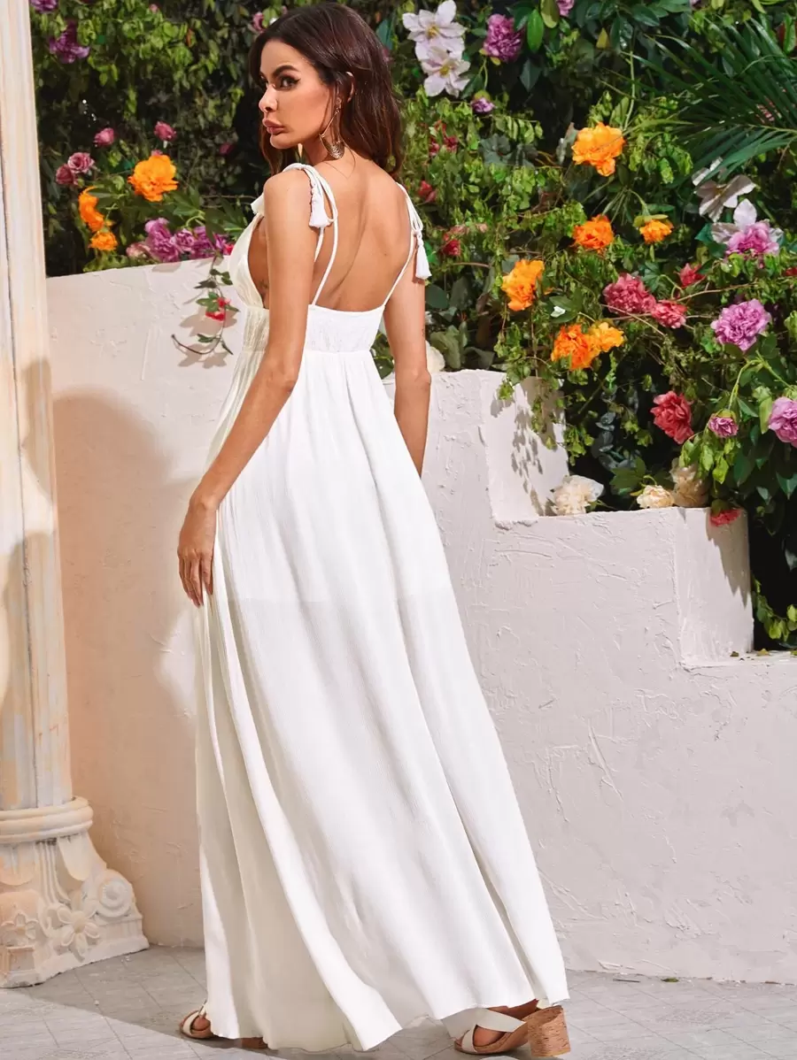 Kleid mit Schulterbändern zum Binden und Geraffter Taille
