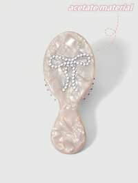 Kawaii Mini Handliche Marmor-Textur Luftpolster Haarbürste, Kopfhautmassage, Strass-Schleife Dekoration