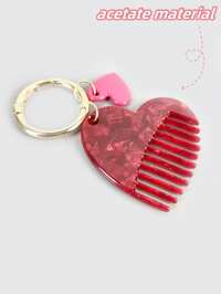 Kawaii Retro rote Herzform Ins Stil Essigsäure Material Haarkamm Herzform tragbarer Schlüsselanhänger