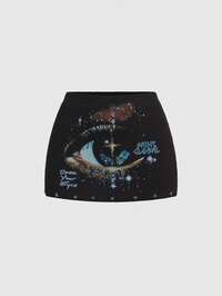Street Life Lässiger Damen Rock mit frechen Augen-Muster
