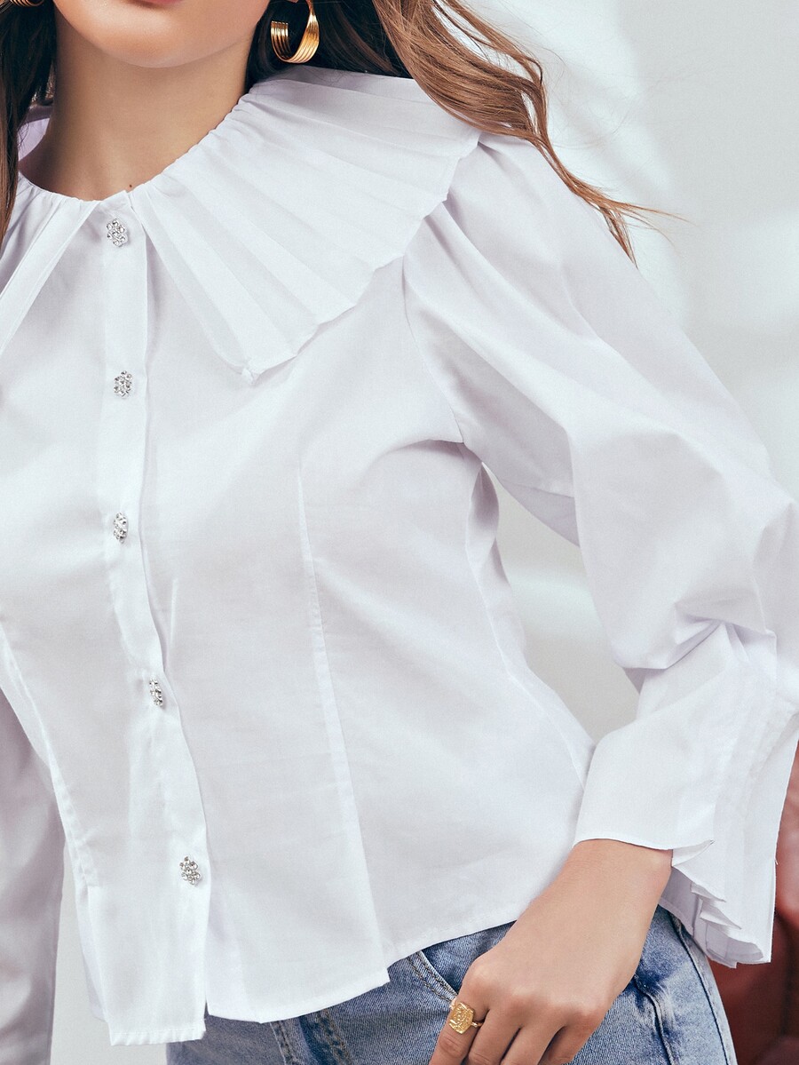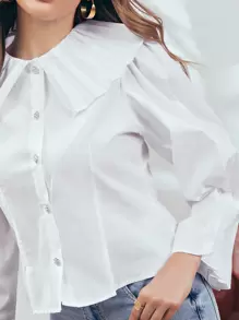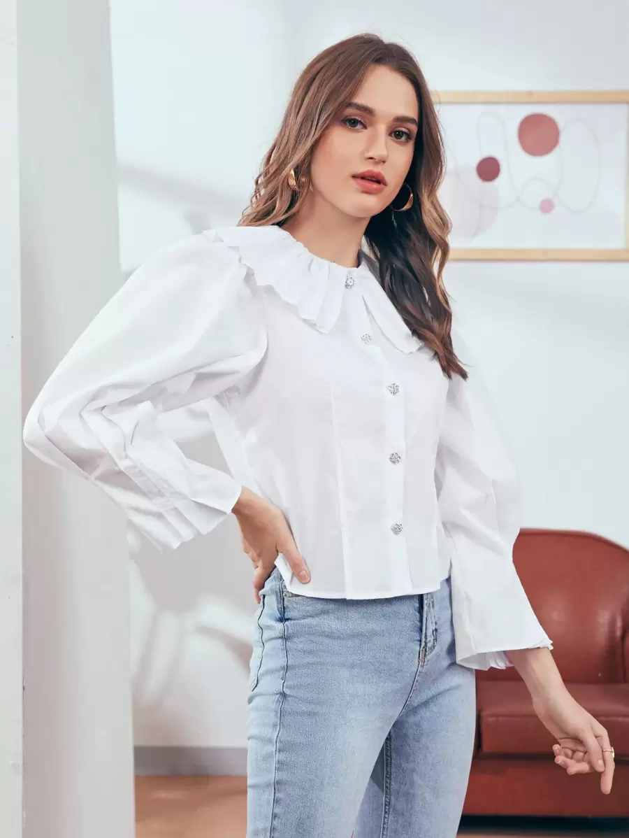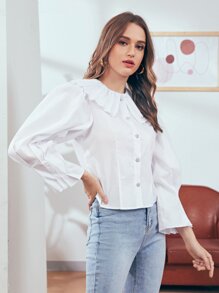 Bluse mit einreihiger Knopfleiste, Peter Pan Kragen und Puffärmeln