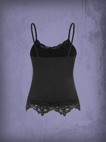 Cami Top mit Schädel & Flügeln Grafik, Kontrast Spitzen