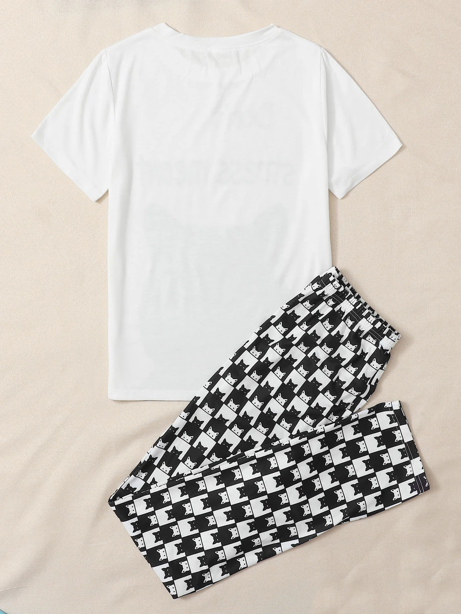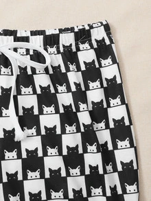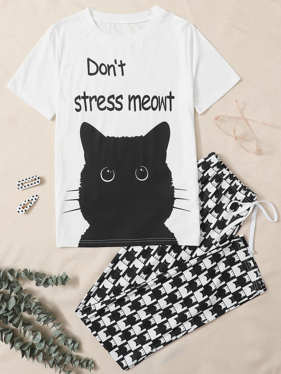 Schlafanzug Set mit Buchstaben & Katze Muster