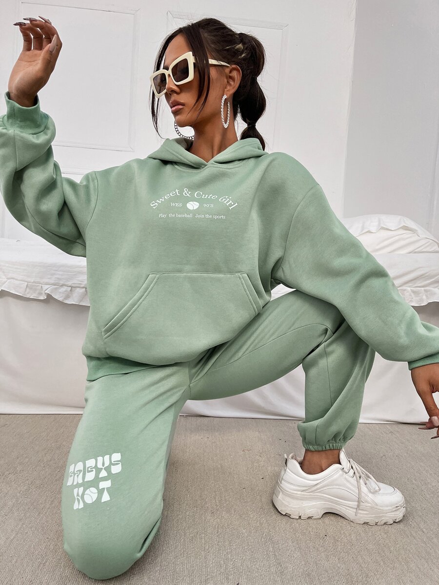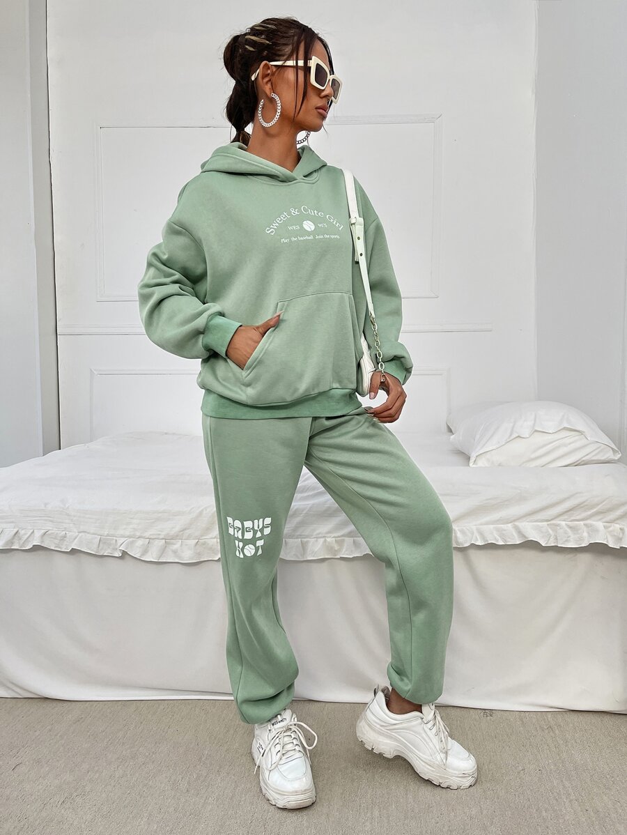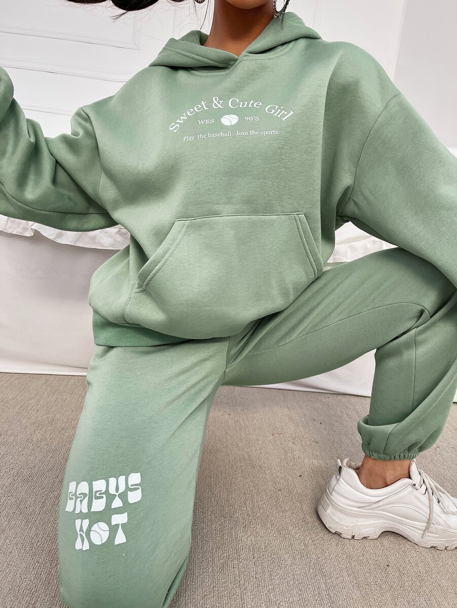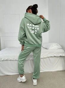 Drop Shoulder Hoodie mit Buchstaben Grafik & Jogginghose