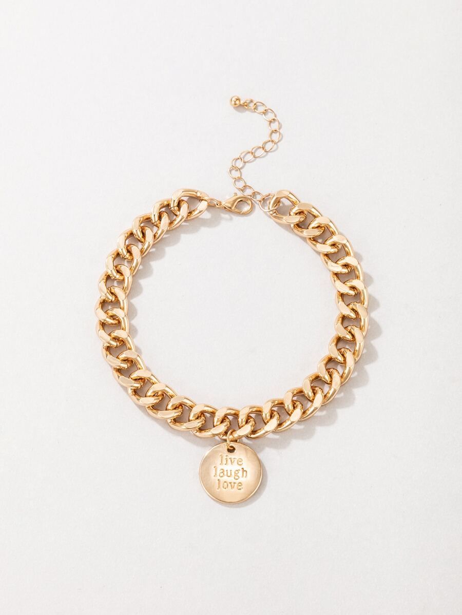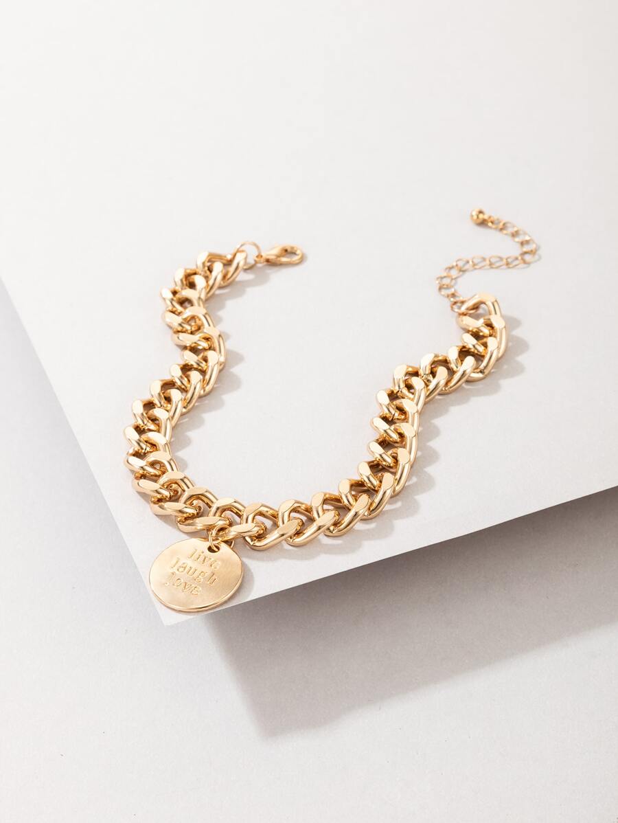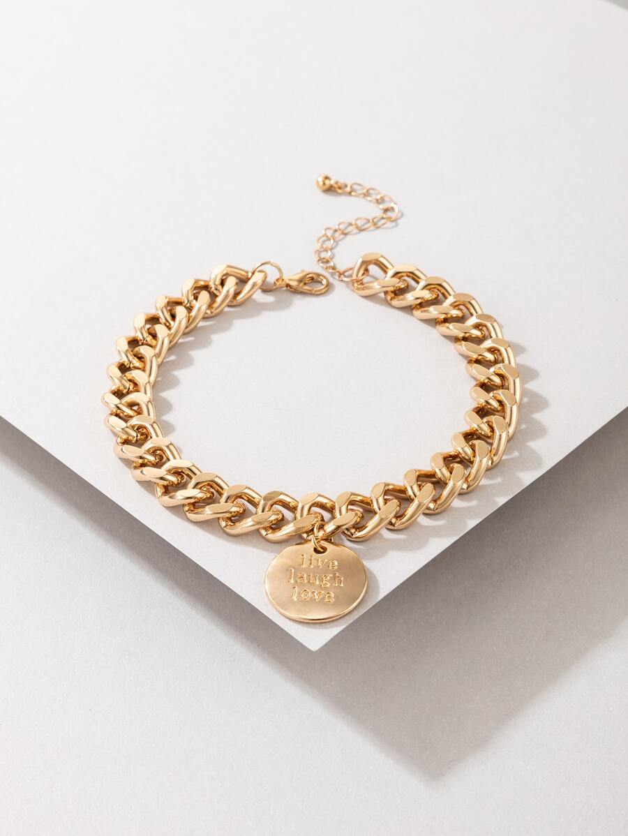 Fußkette mit Buchstaben Grafik, rundem Anhänger
