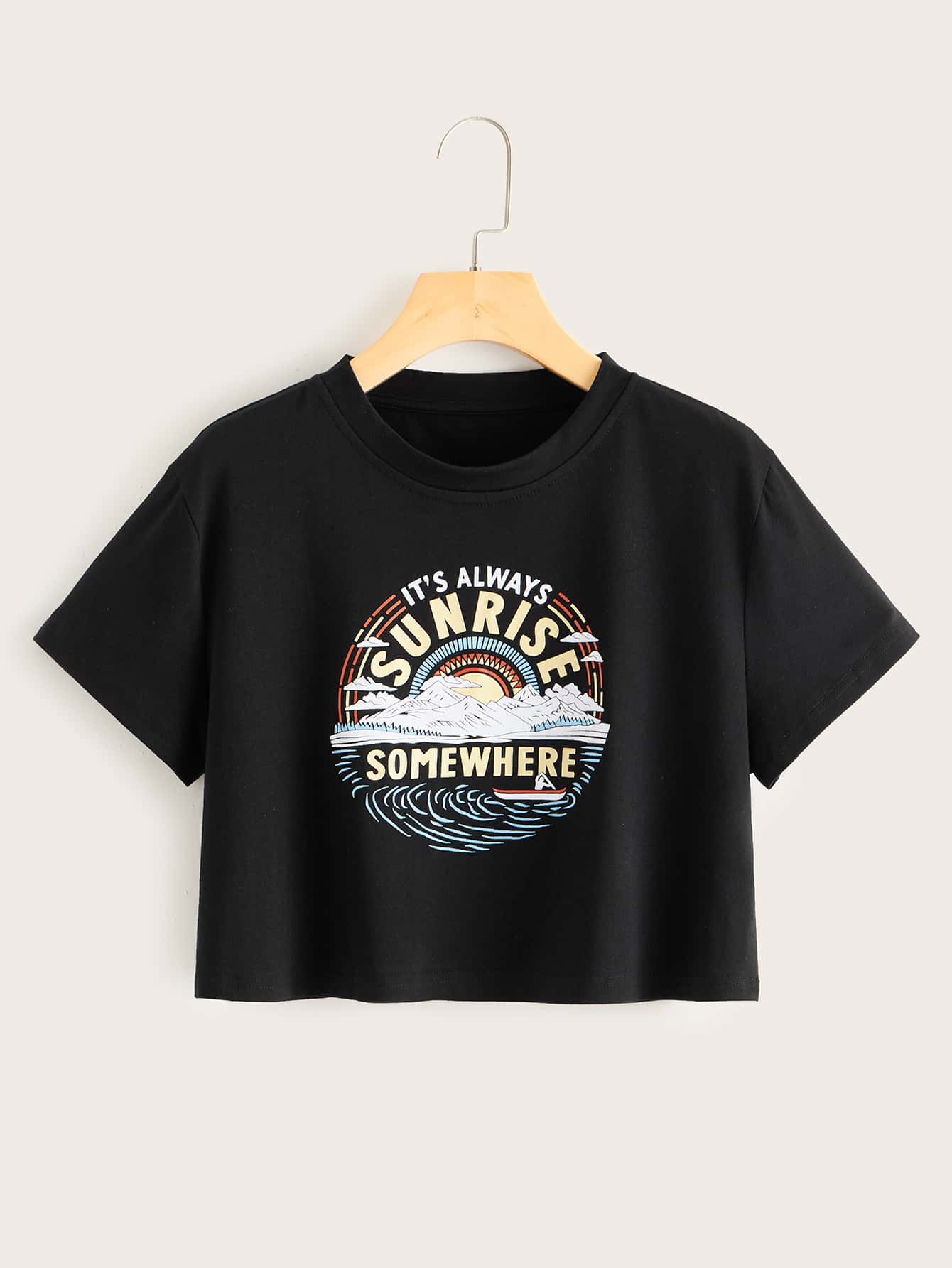 Crop T-Shirt mit Buchstaben Grafik und kurzen Ärmeln