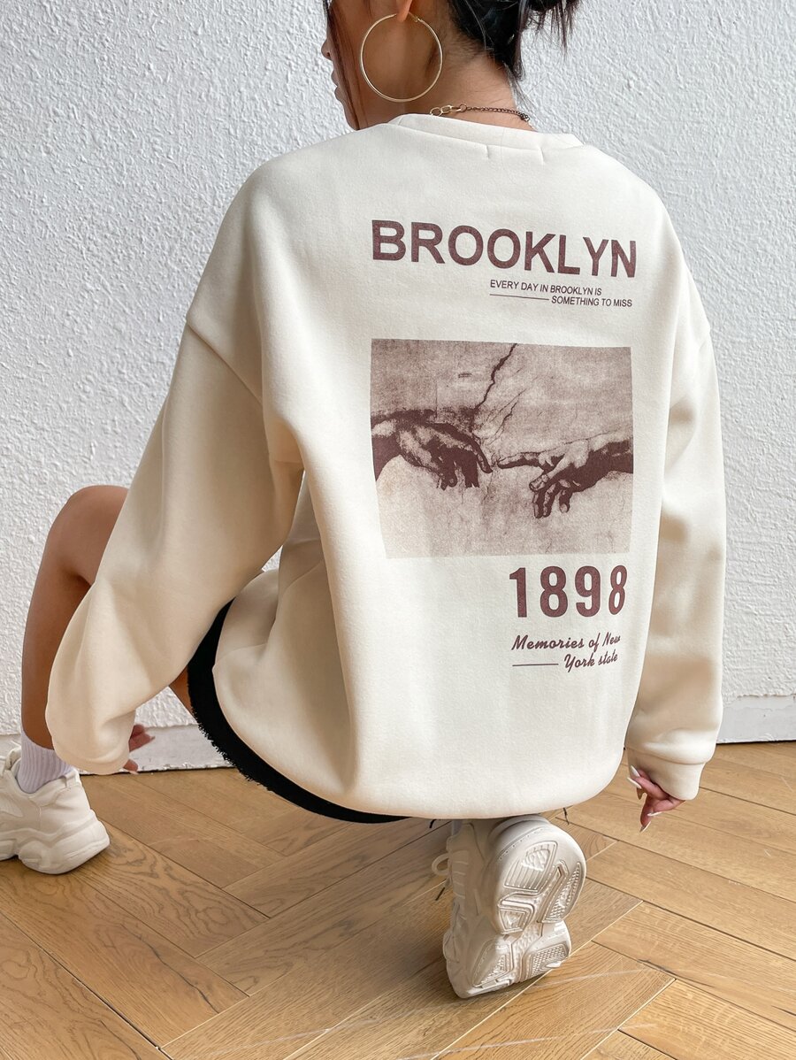 Sweatshirt mit Buchstaben & Hand Muster, Thermal Futter