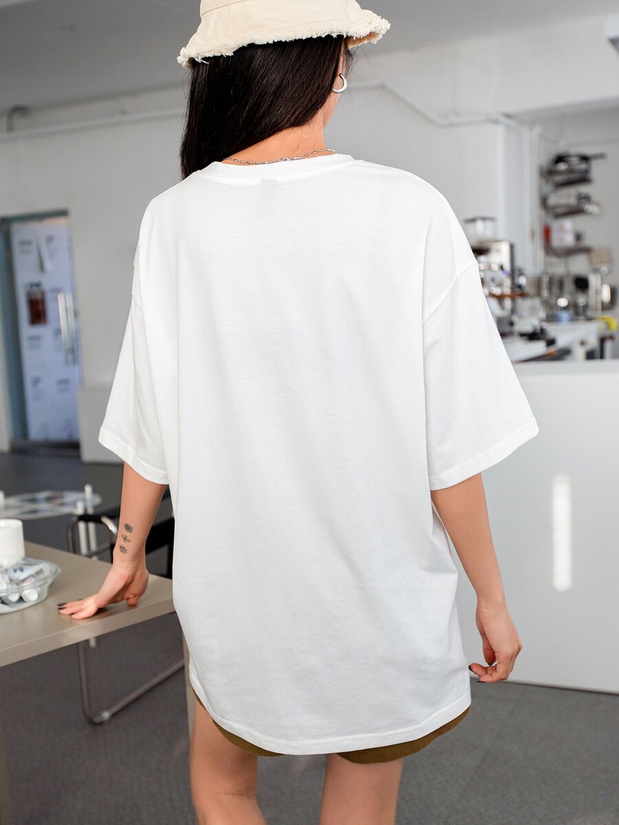 Drop Shoulder T-Shirt mit Buchstaben & Landschaft Muster
