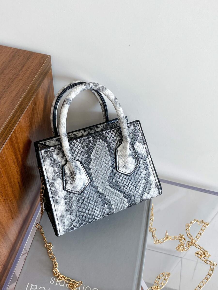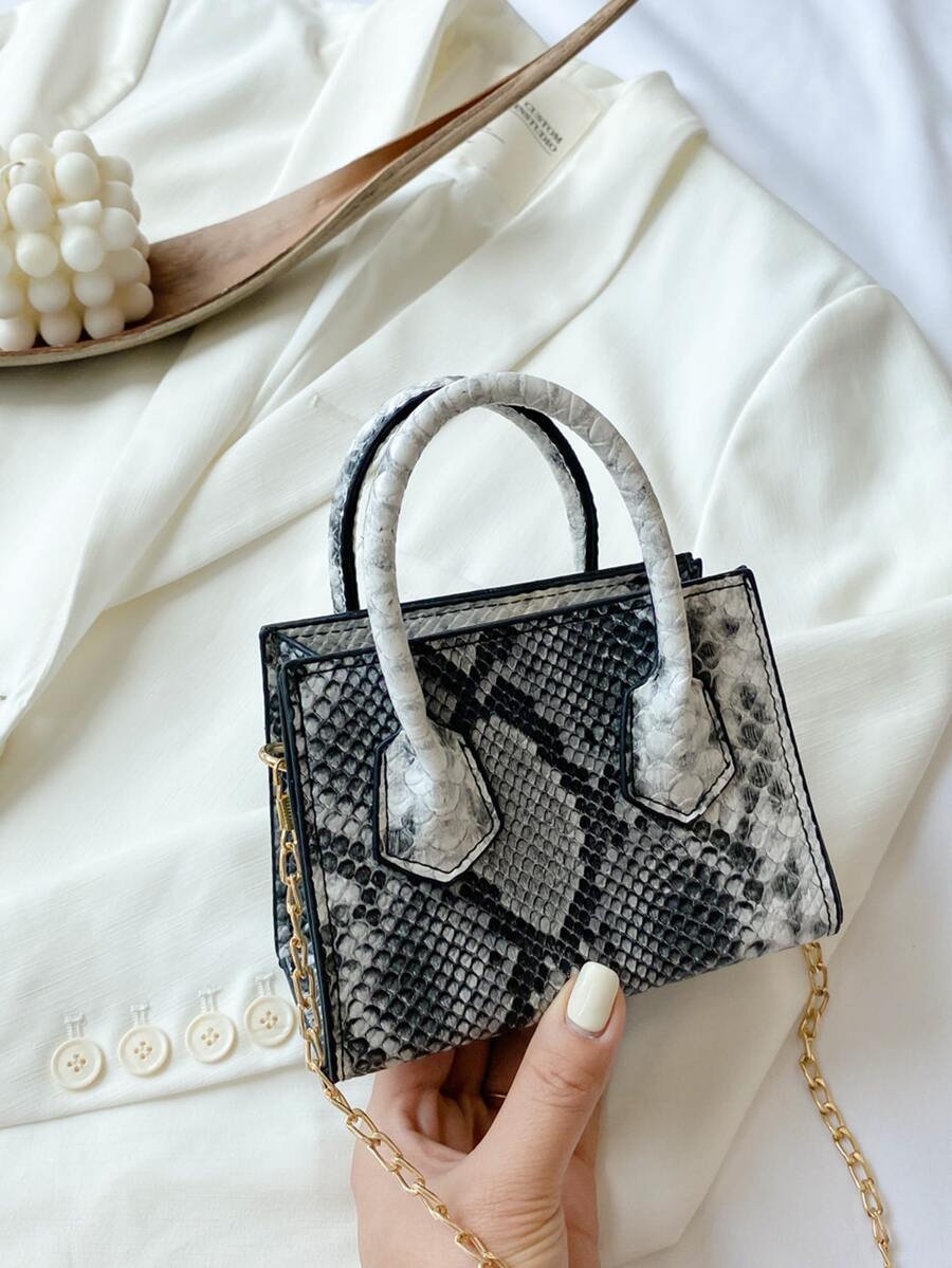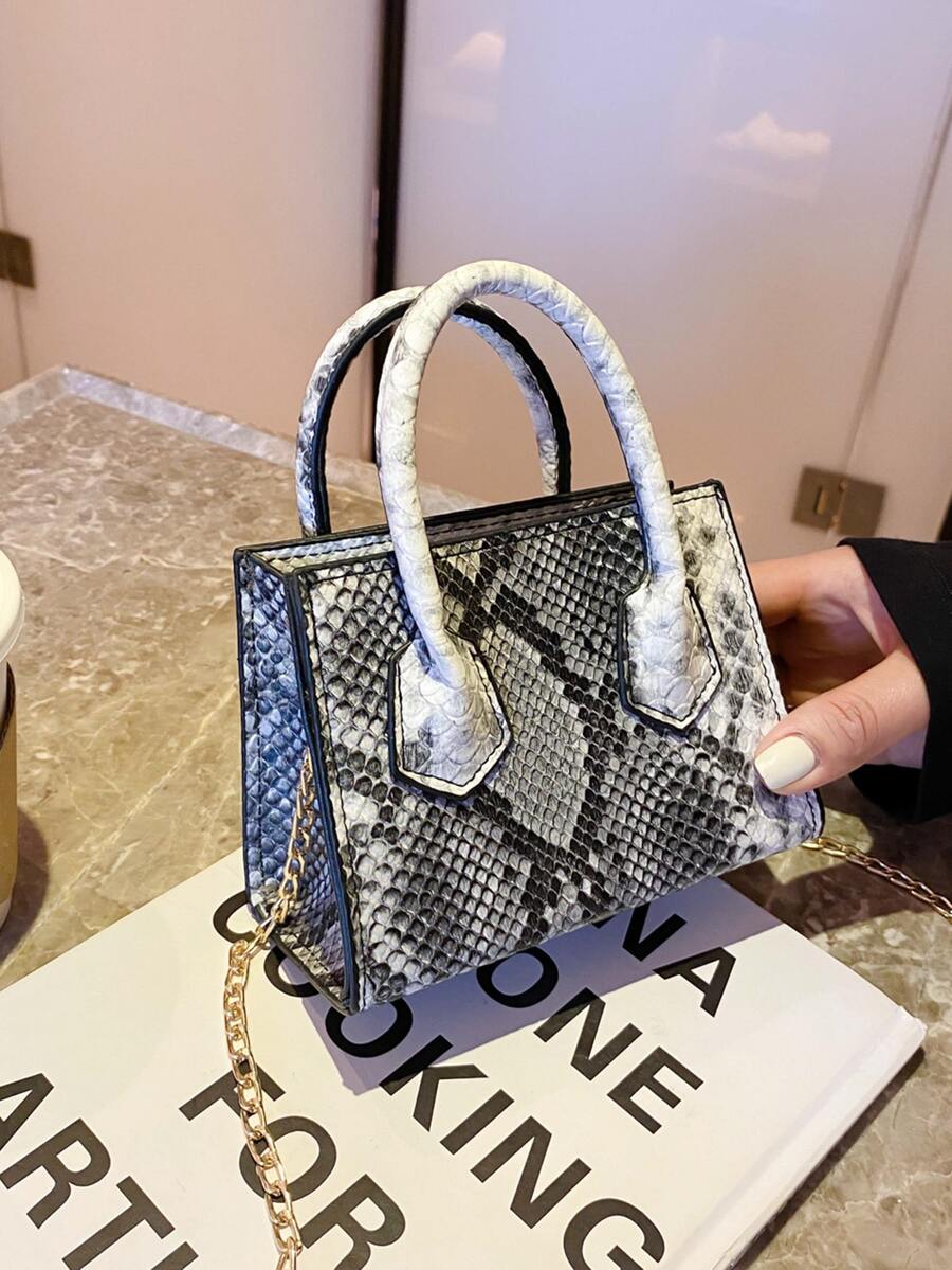 Tasche mit Schlangenleder Muster und Kette Dekor