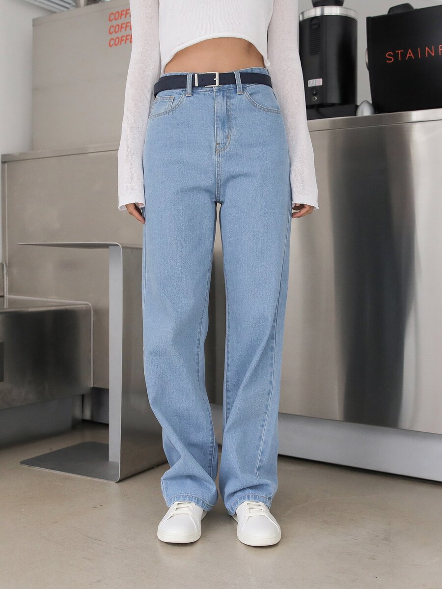 Einfarbige Boyfriend Jeans ohne Gürtel