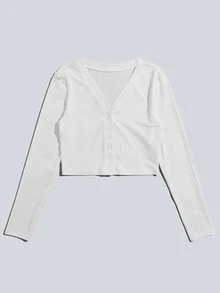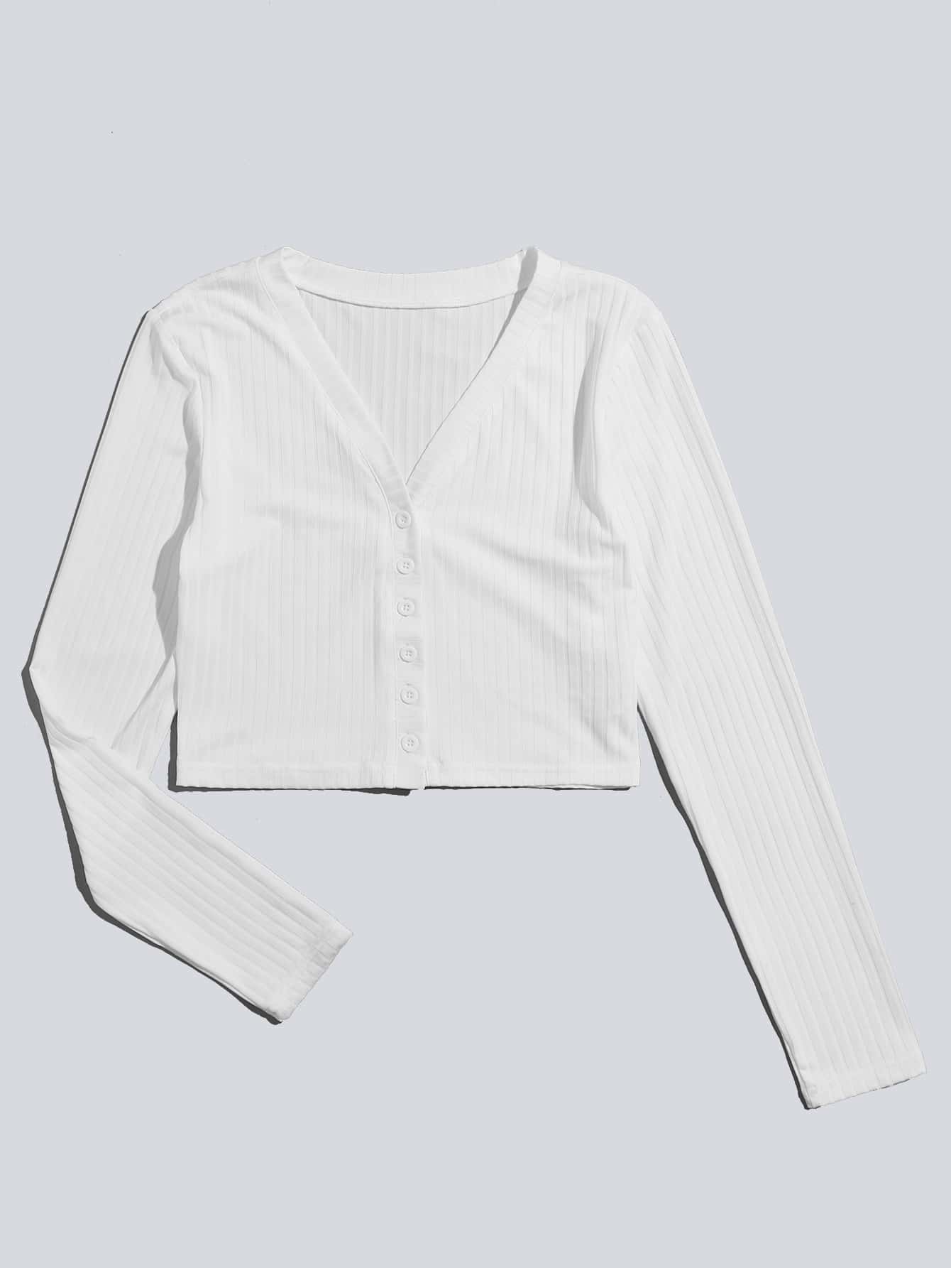 Einfarbiges Crop T-Shirt mit Knöpfen vorne