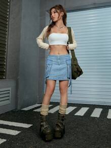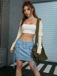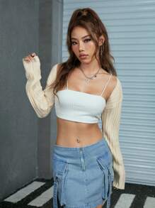 Crop Cardigan mit einfarbig ohne Cami Top