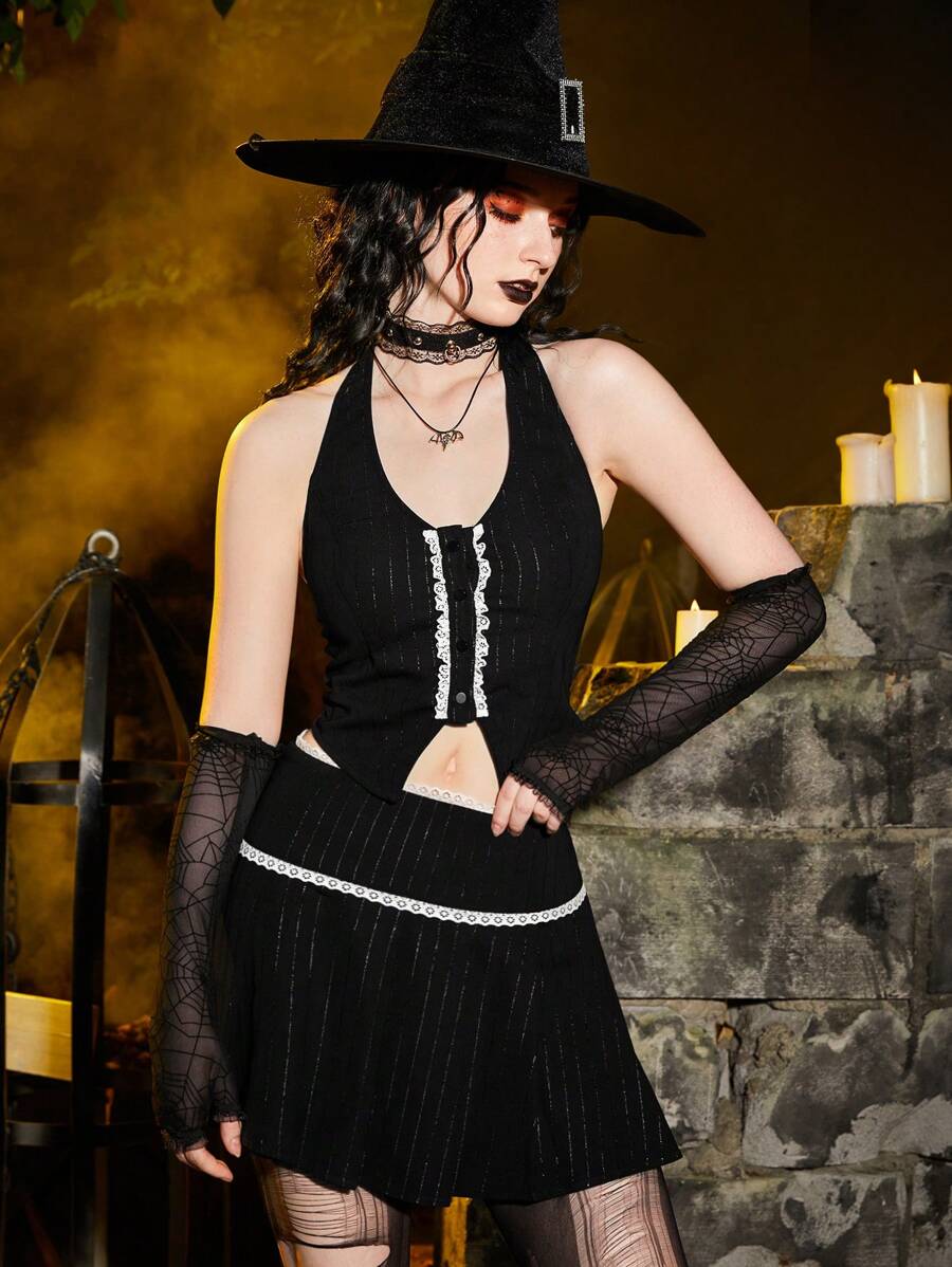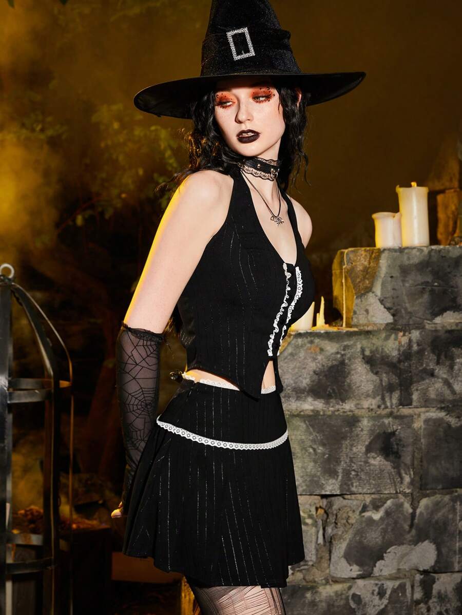 Knöpfen vorn Rückenfrei Gefaltet Schnürung am Rücken Gestreift Lässig Damen Zweiteiler Outfits