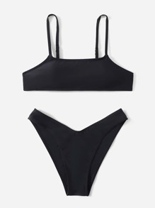 Einfarbiger Bikini mit hohem Beinausschnitt für den Sommerurlaub am Strand