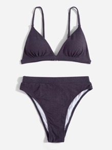 Einfarbiger High-Waist Bikini für den Sommerstrand