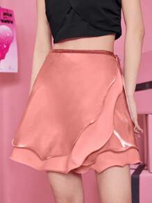 Wickelrock mit Einfarbig Wellensaum, seitlichem Knoten