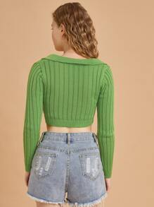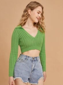 Einfarbiger Gerippter Crop Pullover