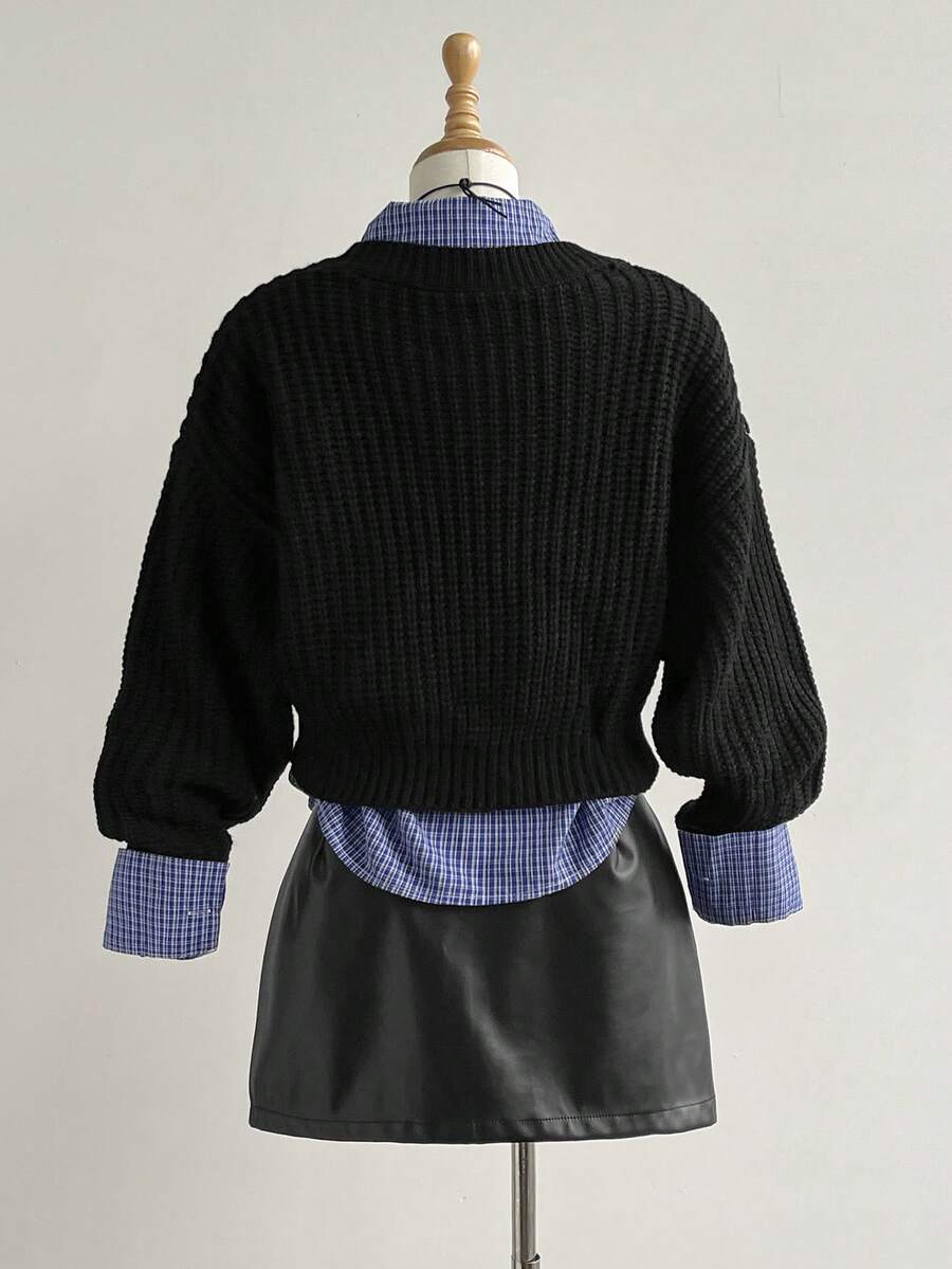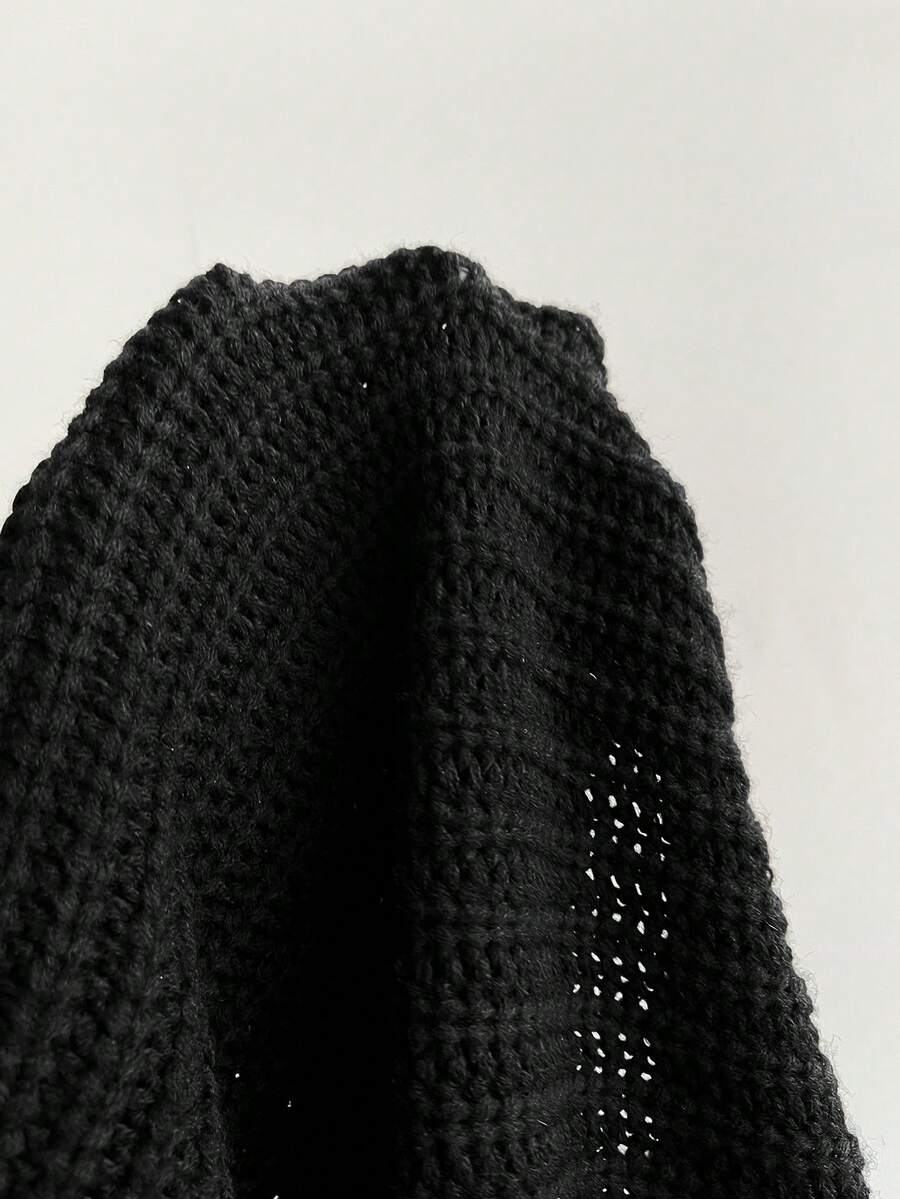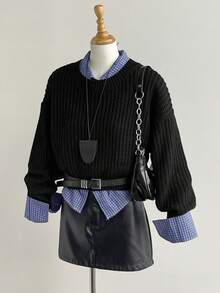 Stricksweater mit geripptem Strick und Drop-Shoulder, Damen Frühling/Herbst Lässig Langarm Loose Fit Schwarzer Drop-Shoulder Pullover für Frauen, Langarmtop