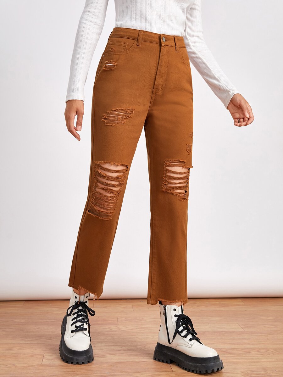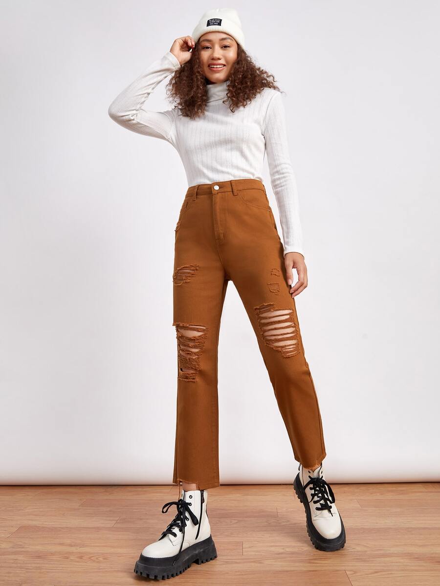Jeans mit Riss, geradem Beinschnitt