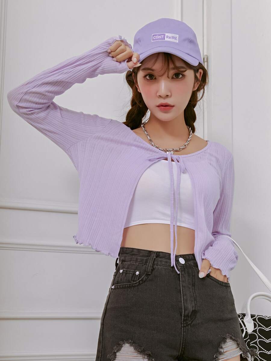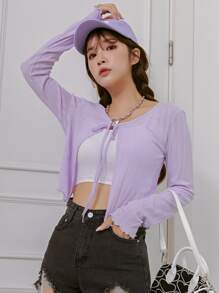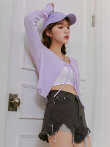 Einfarbiges Crop Top mit Band vorne ohne Cami Top