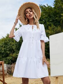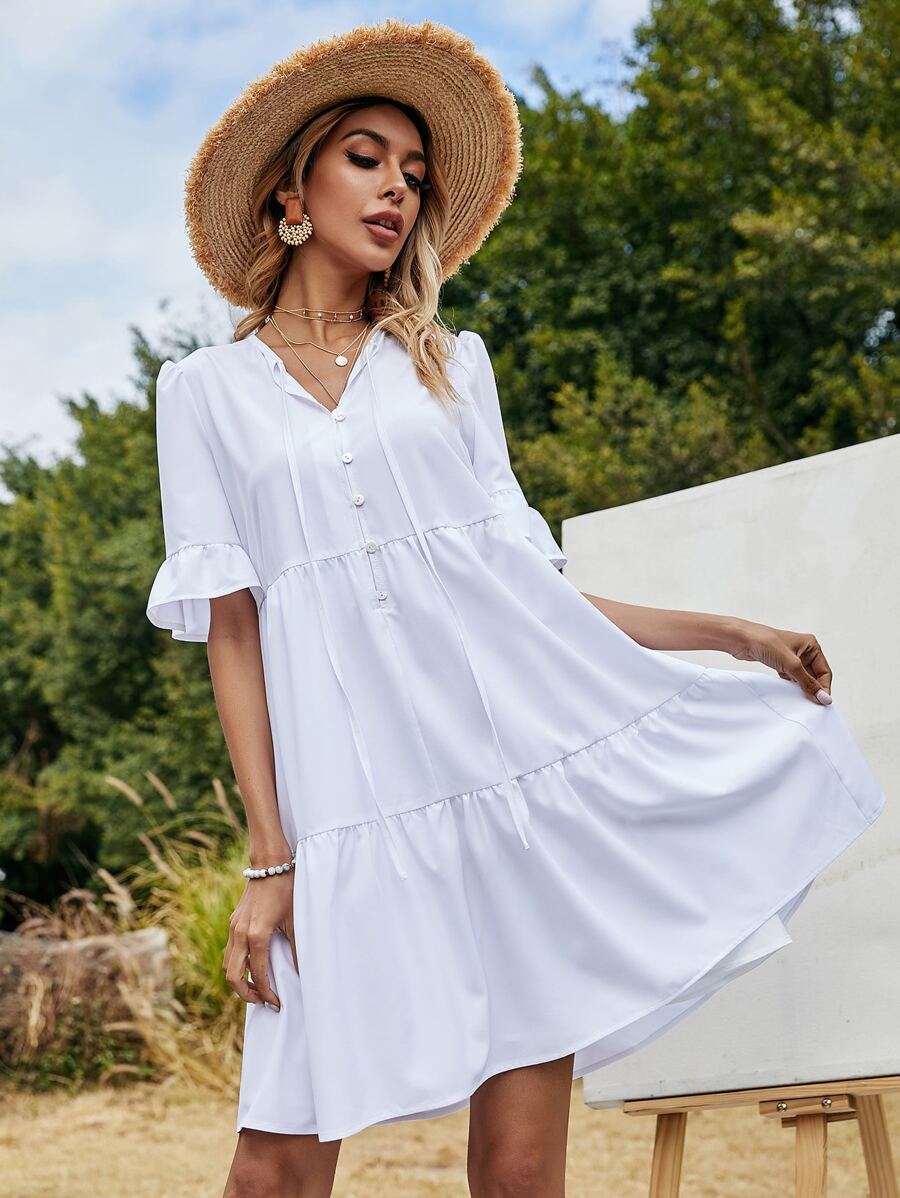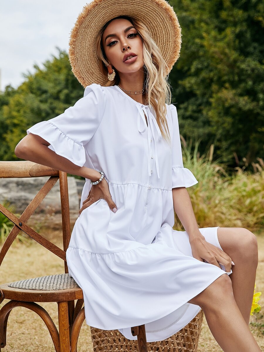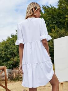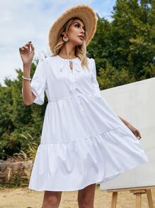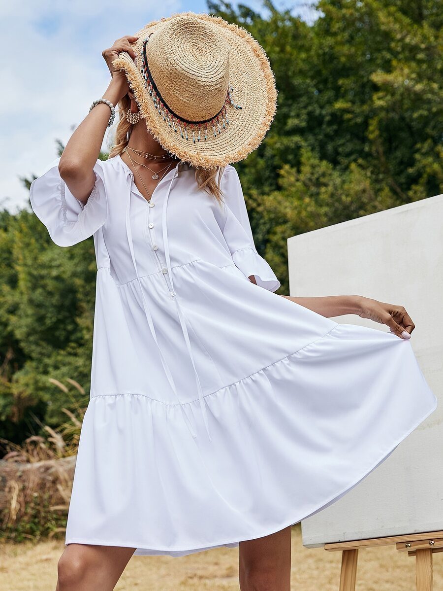 Einfarbiges Babydoll Kleid mit Halsband