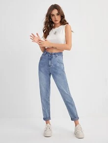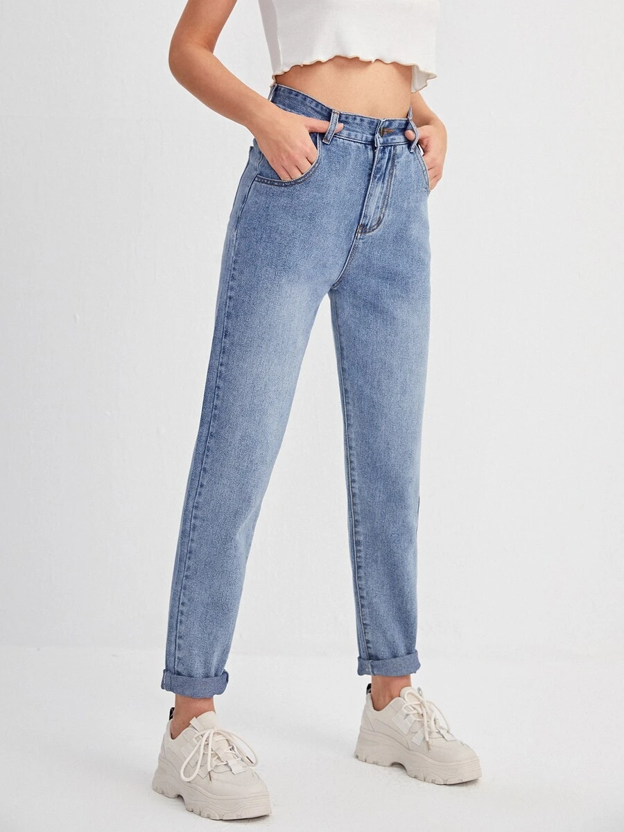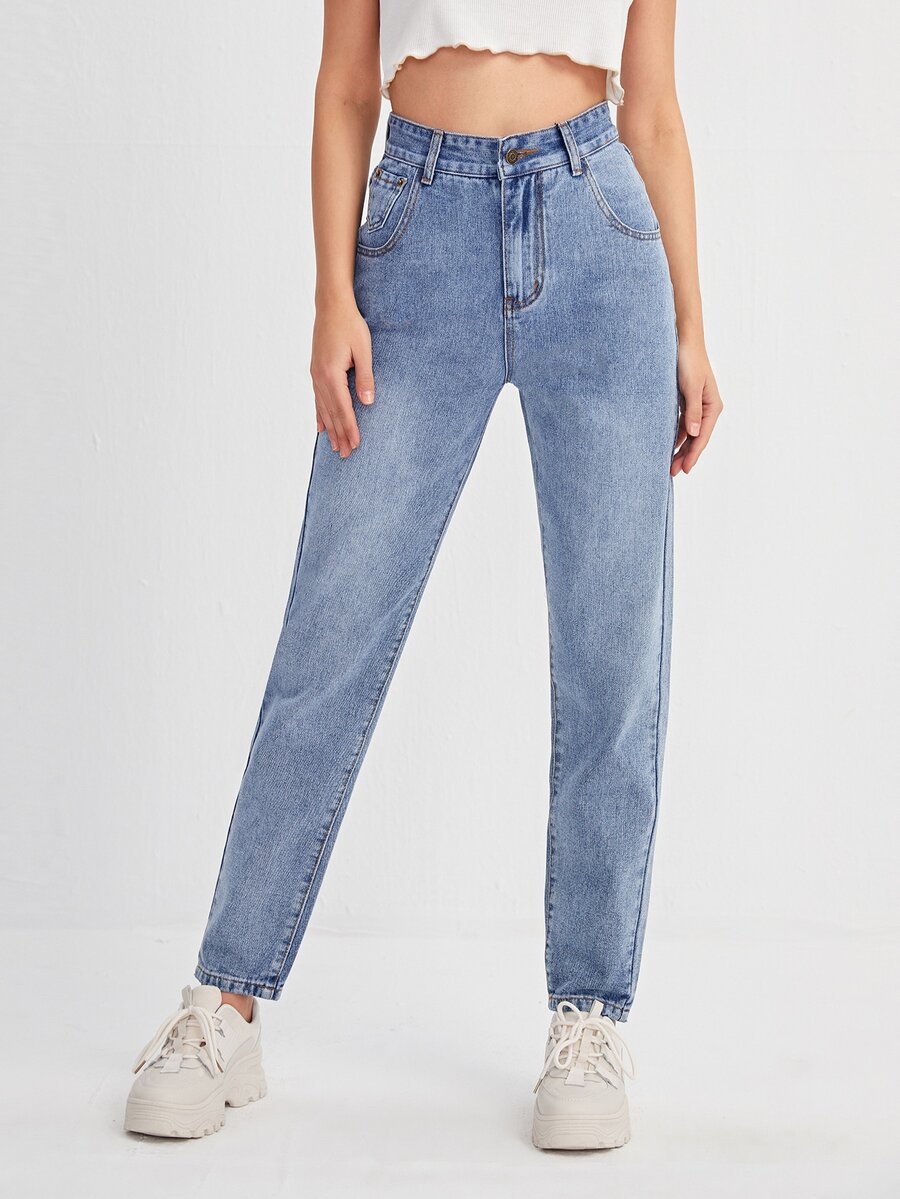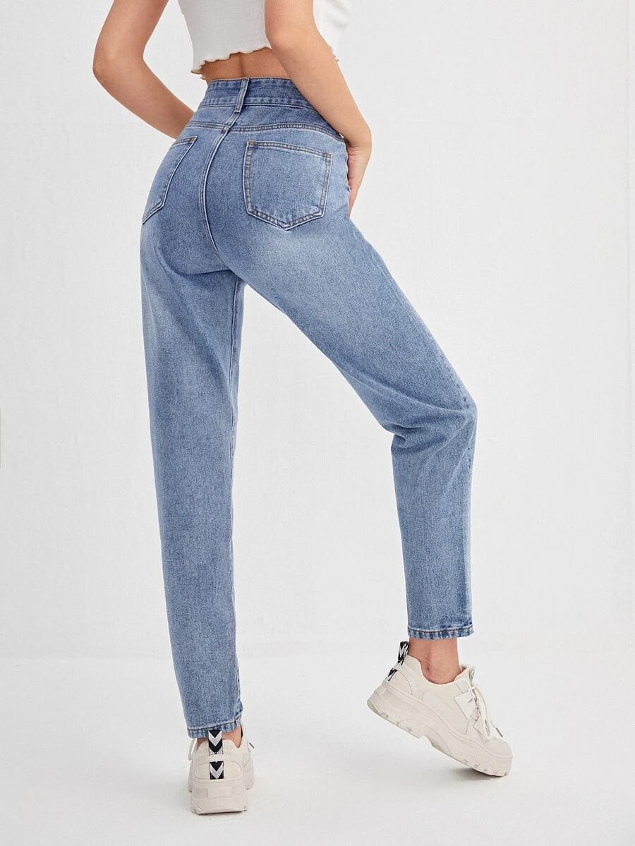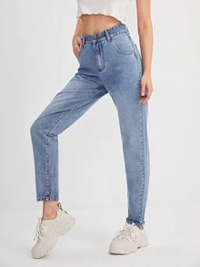 Einfarbige Jeans mit Wäsche und Knöpfen