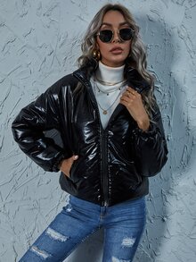 Einfarbige Lackleder Jacke mit Reißverschluss