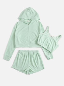 Hoodie mit Reißverschluss & Tube Top & Shorts