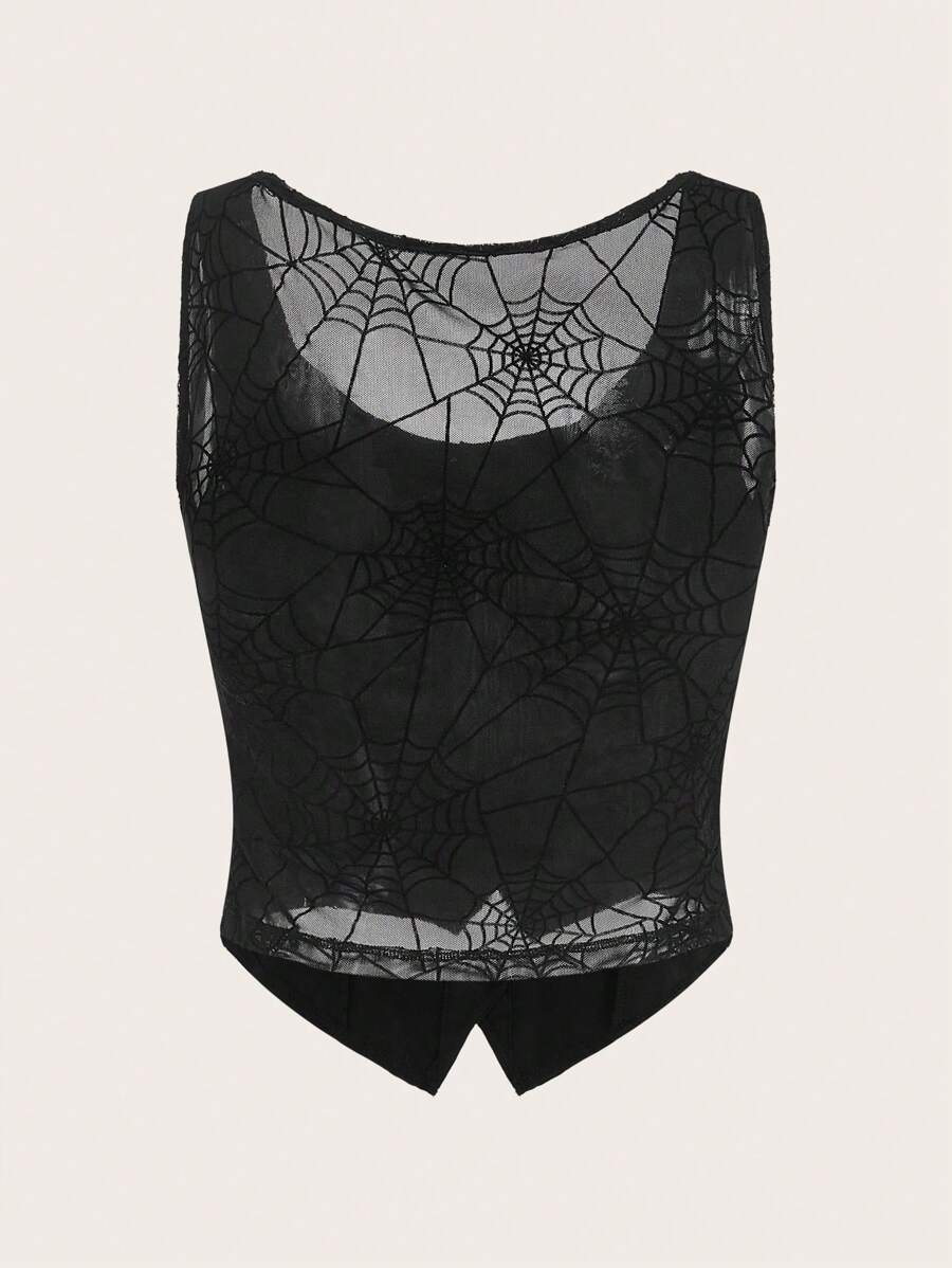 Weste-Jacke mit Spinnennetz Muster, Knopf vorne,