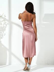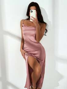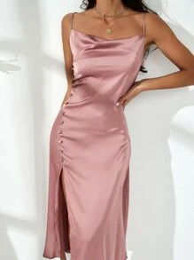 Satin Kleid mit Schlitz und Knöpfen