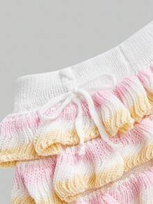 Süße & Kawaii Kuchen-Stil geschichteter Rüschen-Saum Regenbogen-Farbverlauf gestrickte Damen Shorts Rock