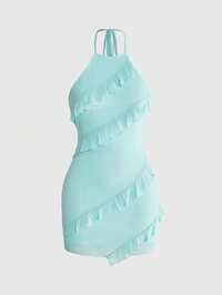 Sweetness Urlaubssüßes plissiertes, mehrlagiges A-Linien-Neckholder-Minikleid für Frauen