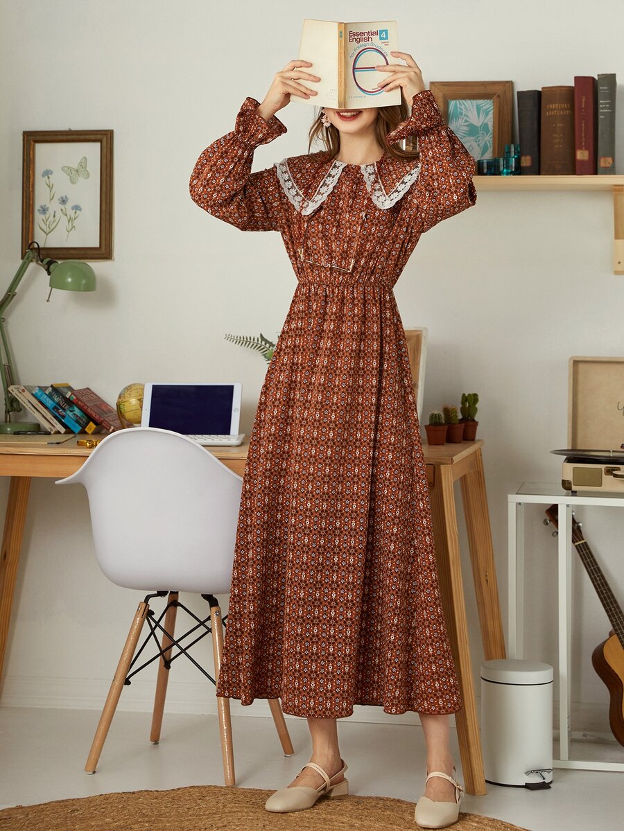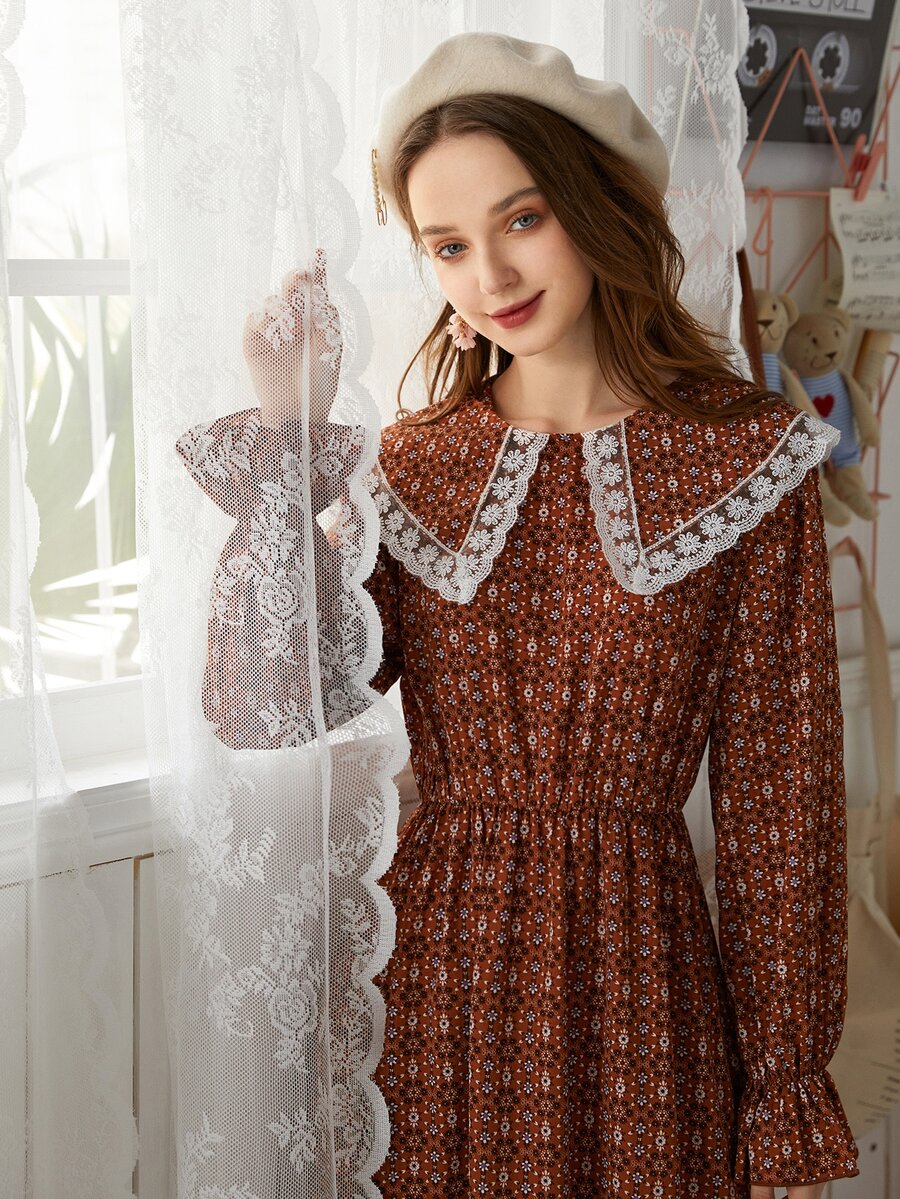 Kleid mit Peter Pan Kragen und Blümchen Muster