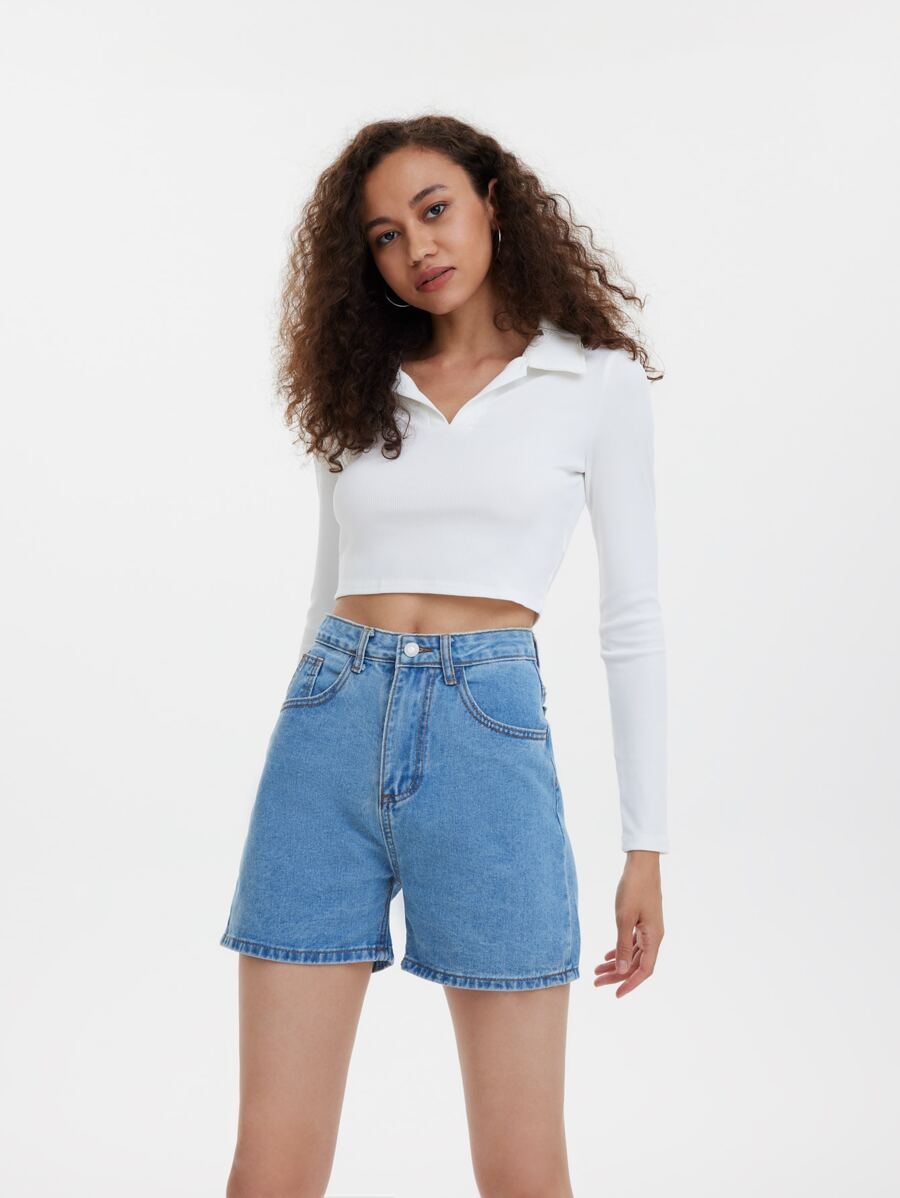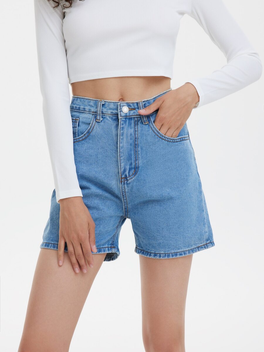 Einfarbige Denim Shorts mit geradem Beinschnitt