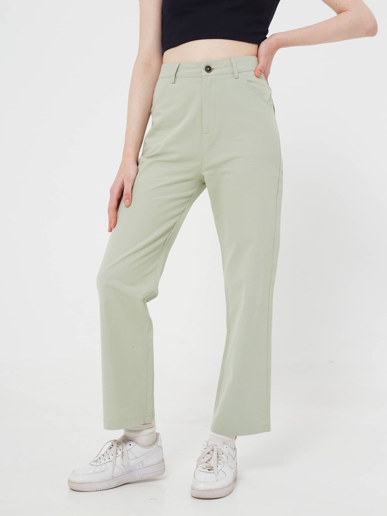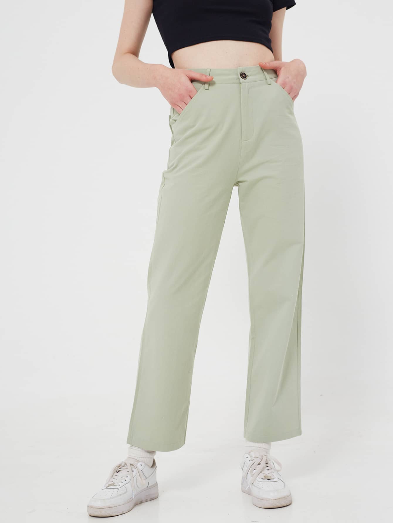Einfarbige Hose mit geradem Beinschnitt