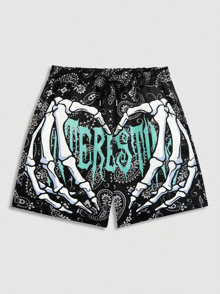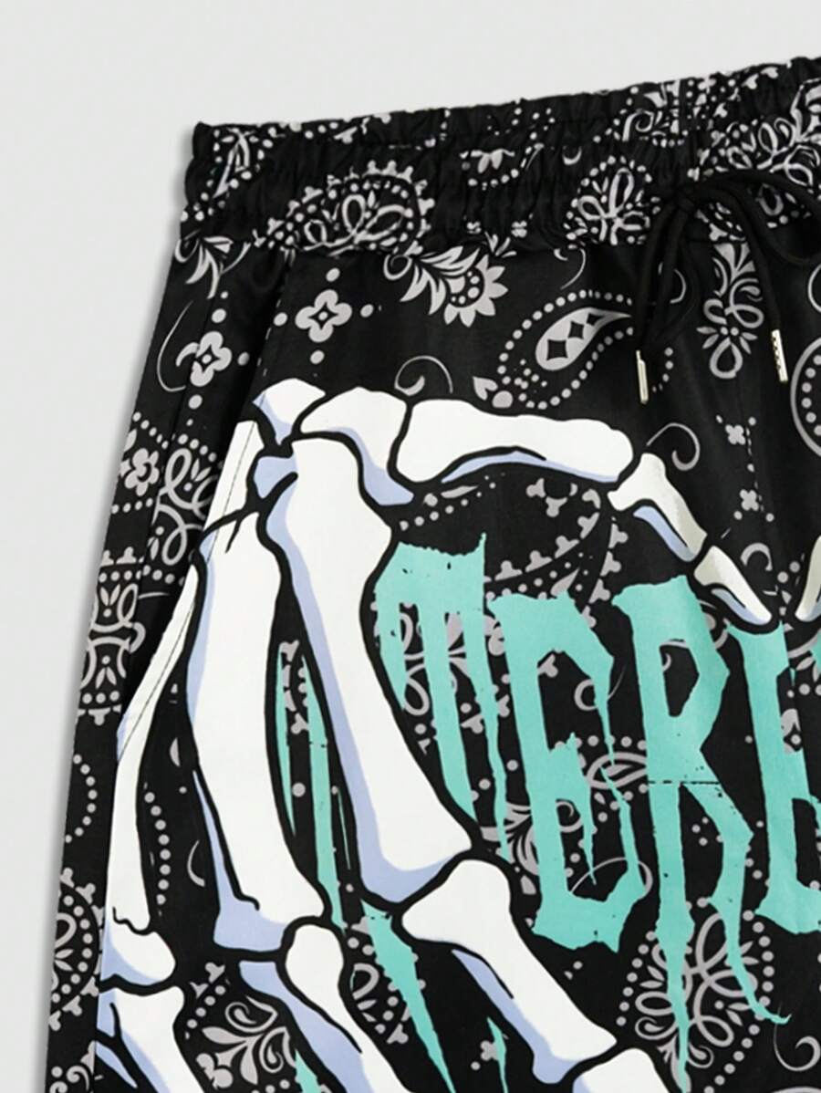 Street Life 2 Stücke Herren Set aus T-Shirt mit Portrait Muster und Shorts, Frühling & Sommer, Schule