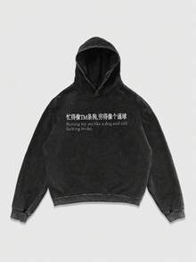 Street Life Schwarzer säuregewaschener Kapuzenpullover für Herren, ohne Tasche