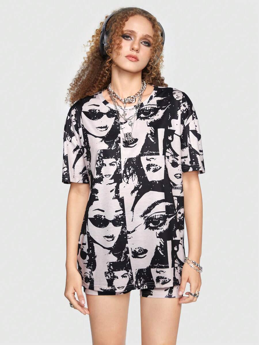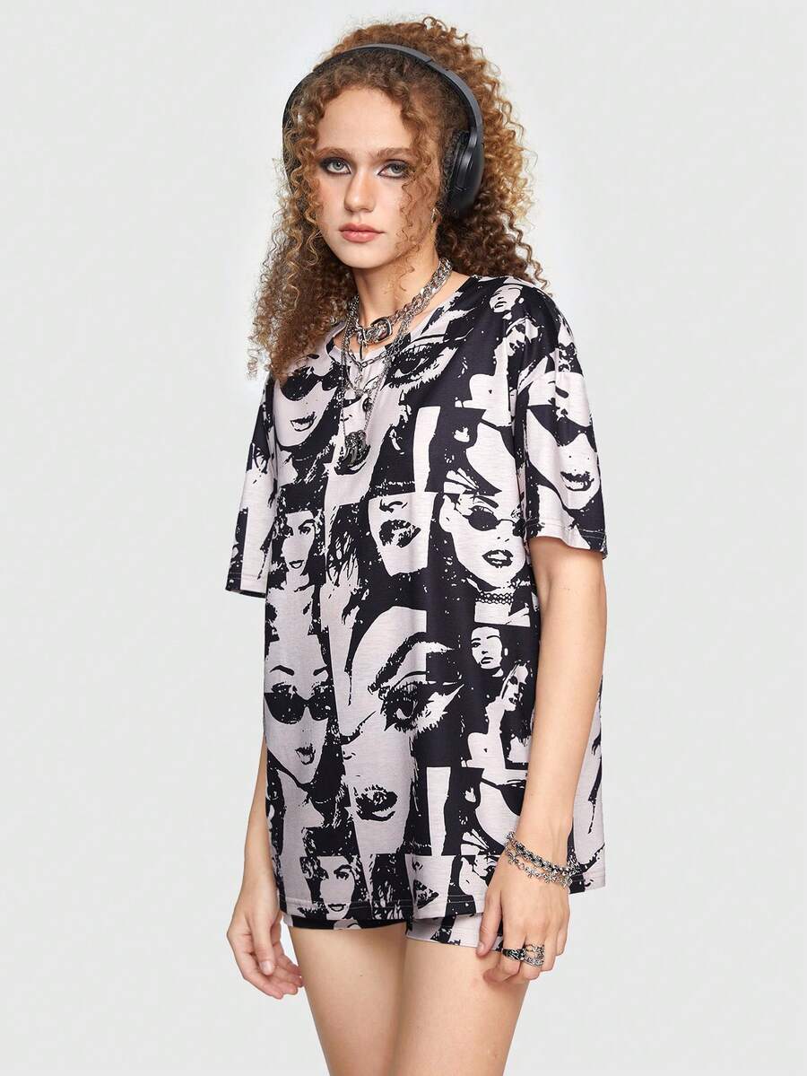 Street Life Drop Shoulder T-Shirt mit Figur Grafik,