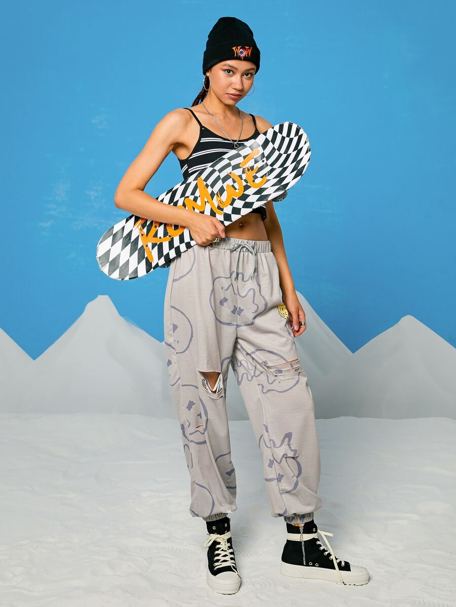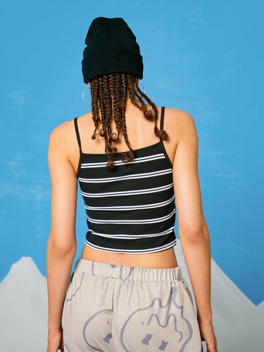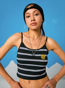 Street Life Crop Cami mit Grafik Stickereien und Streifen