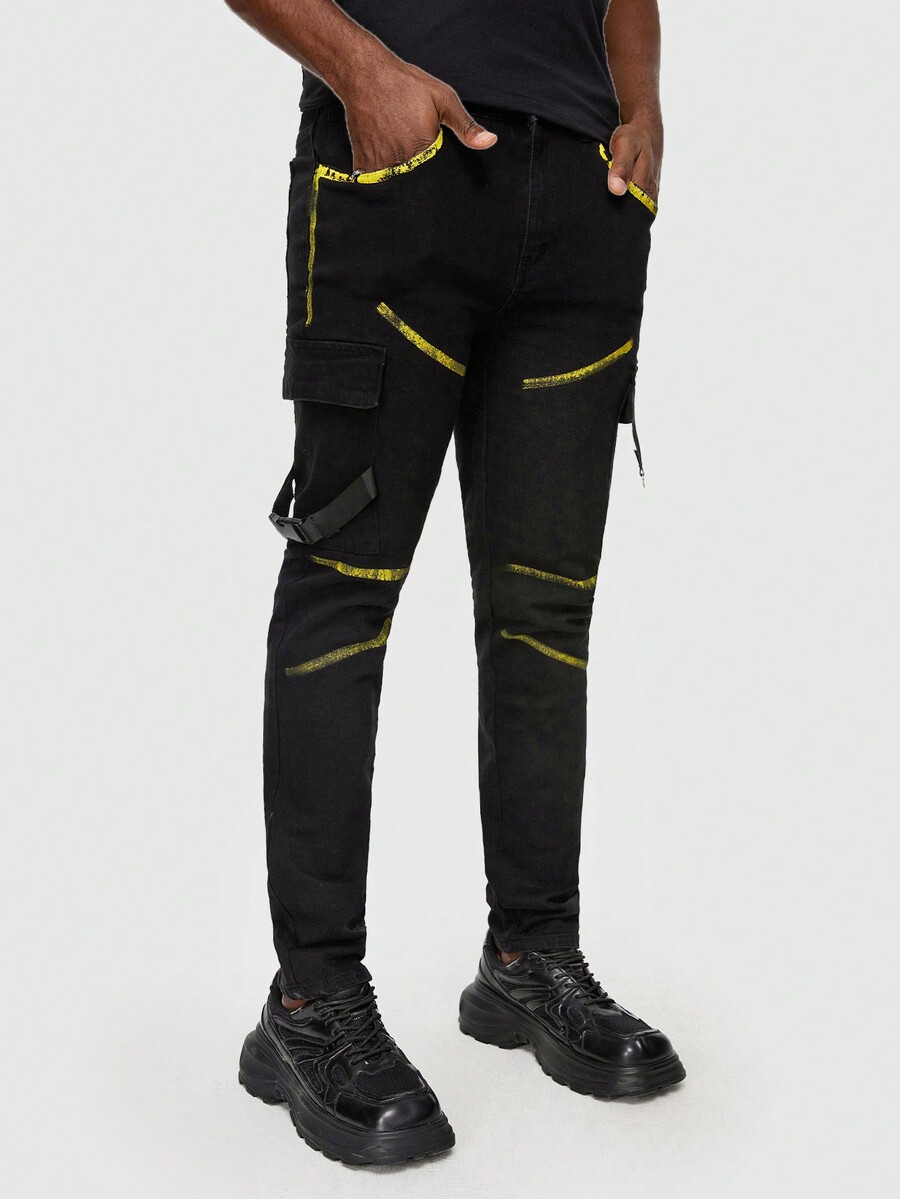 Street Life Männer Cargo Jeans mit Kontrast Band, Pattentasche,