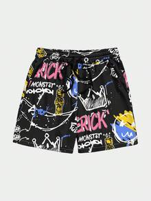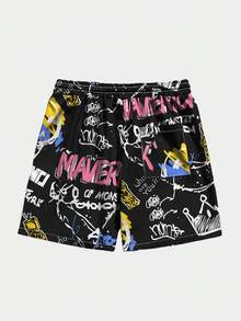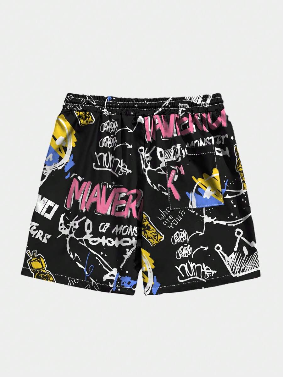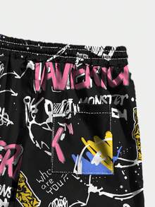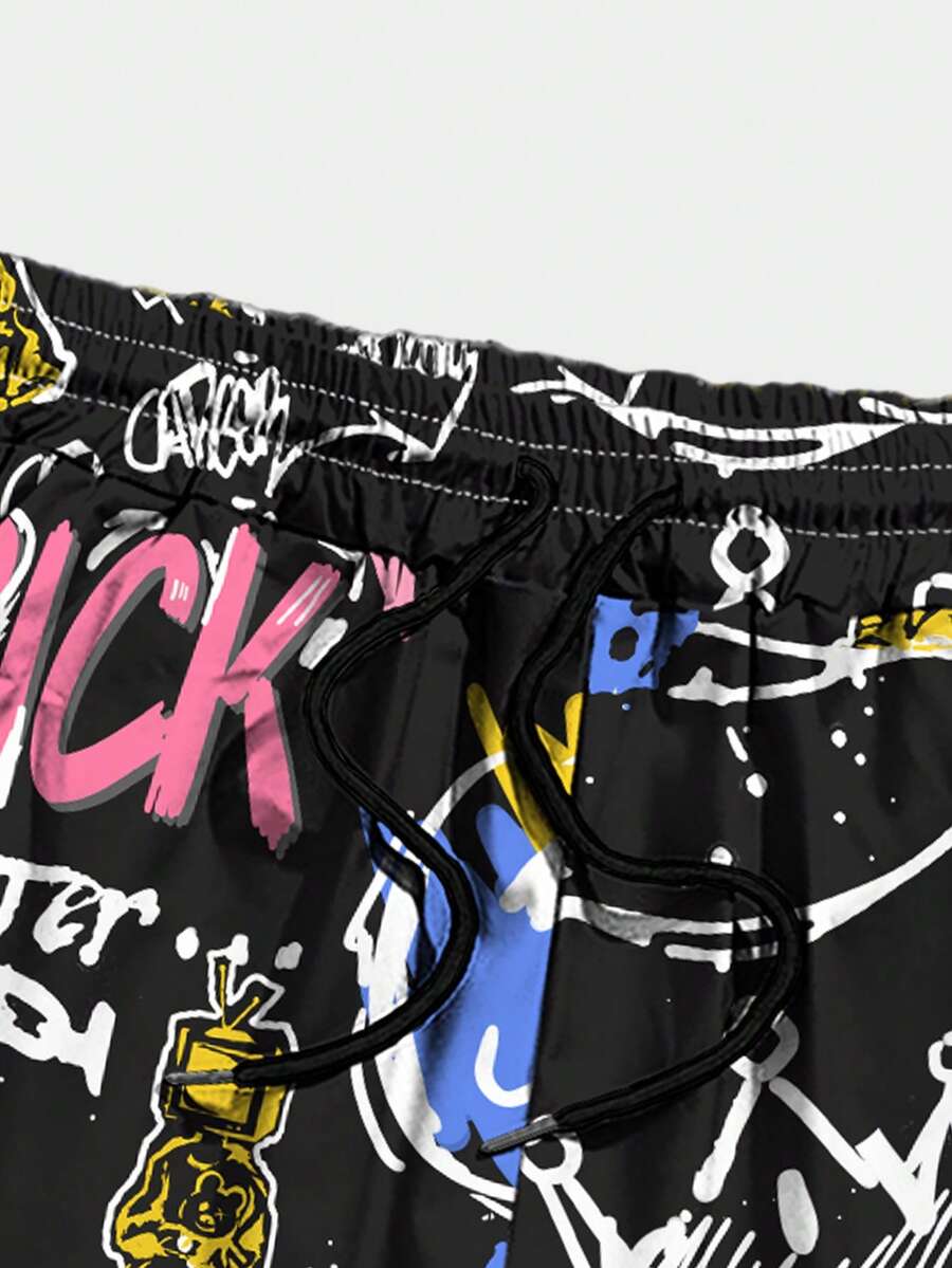 Street Life Männer Shorts mit Graffiti Muster, Tunnelzug,