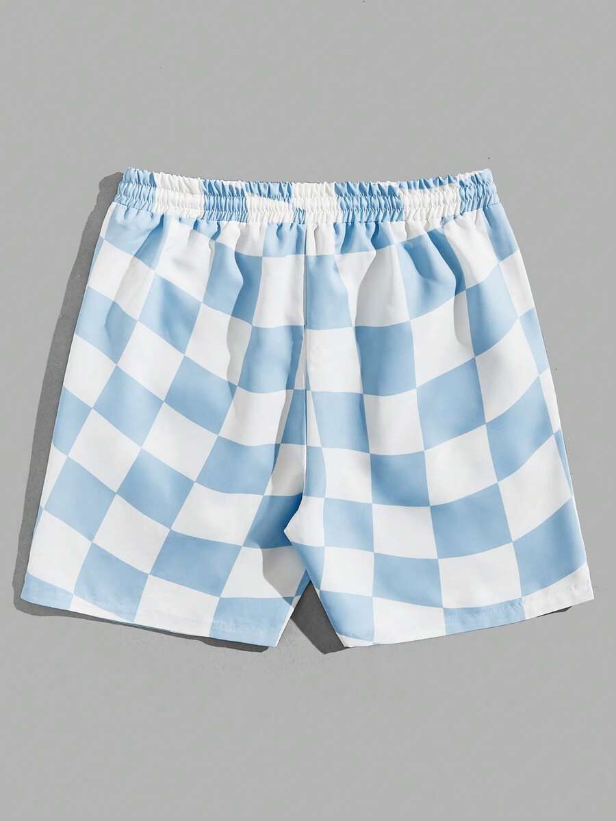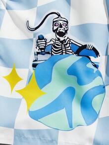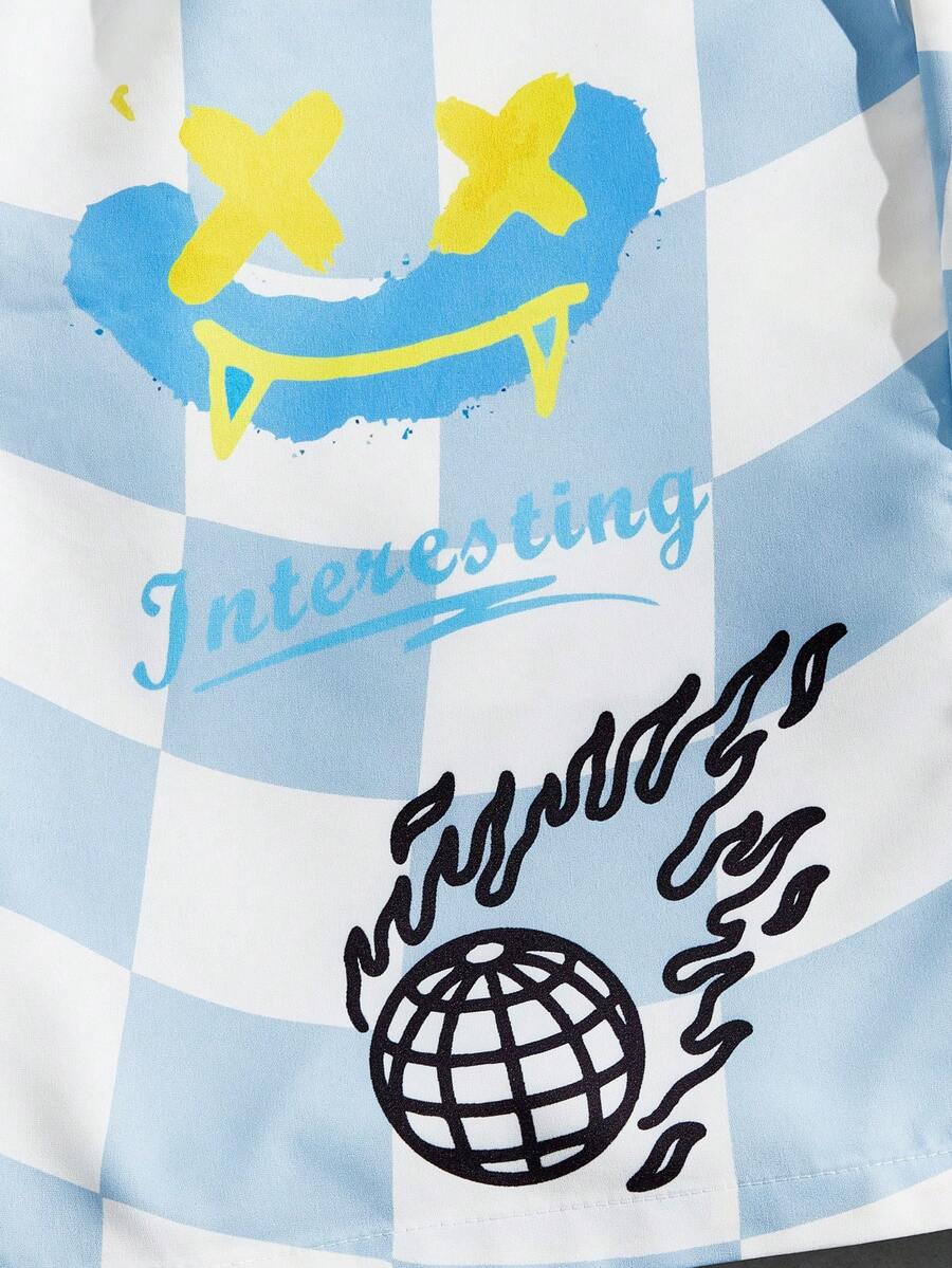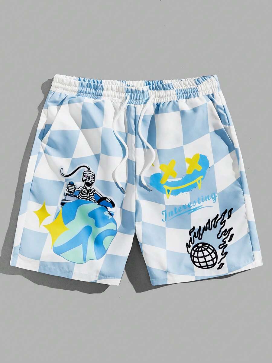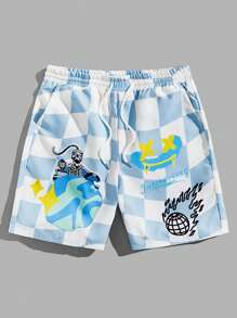Street Life Männer Shorts mit Plaid Cartoon & Buchstabe Grafik, Tunnelzug,