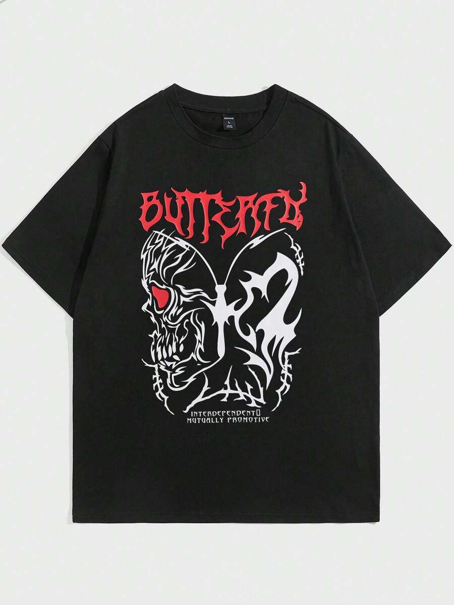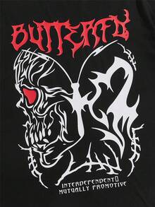Street Life Männer T-Shirt mit Schädel Buchstabe & Schmetterling Muster,