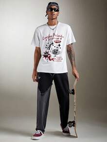 Street Life Männer T-Shirt mit Schädel & Buchstaben Grafik,