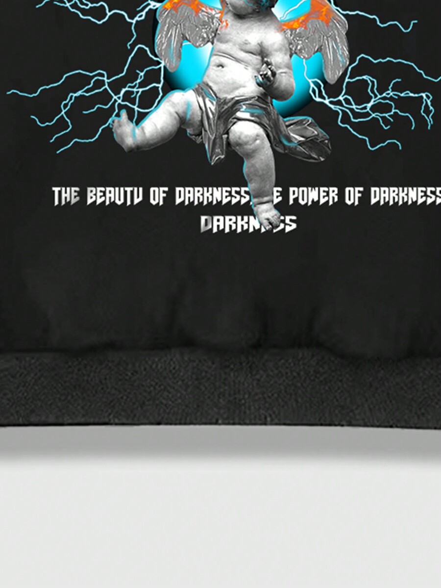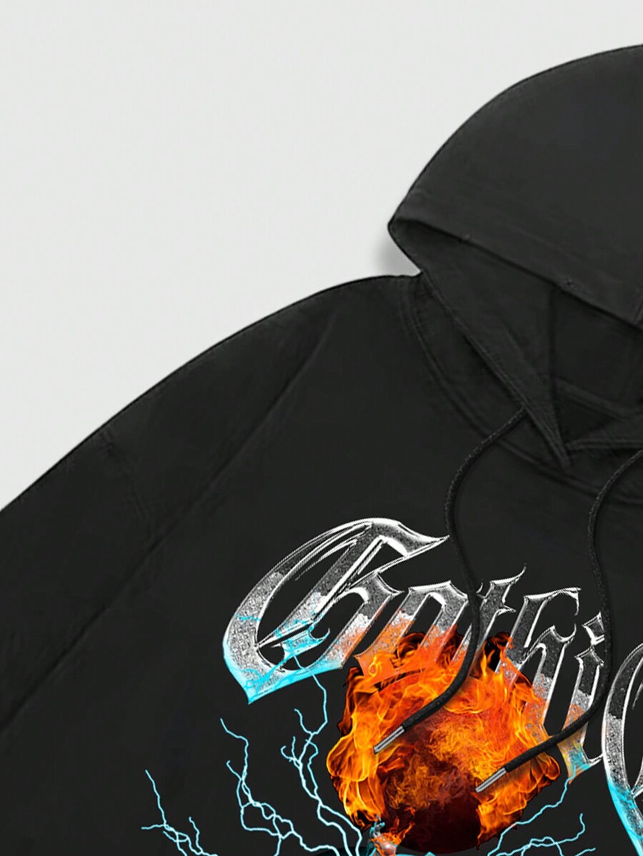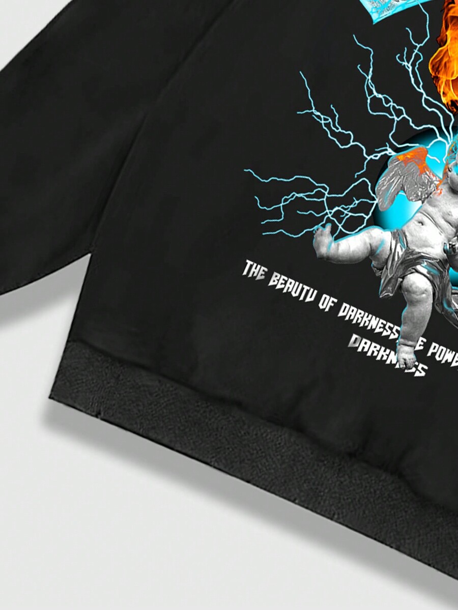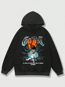 Street Life Männer Hoodie mit Buchstaben & Figur Grafik, Tunnelzug,