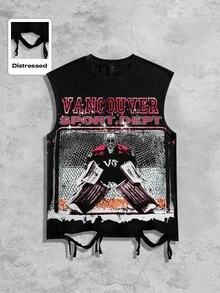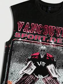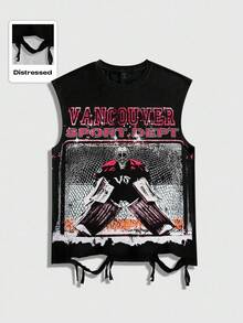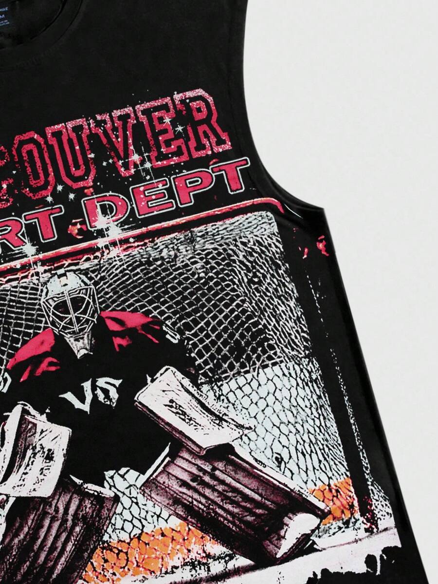 Street Life Eishockey-Grafik-Ärmelloses Rundhals-T-Shirt mit Vintage-Design für Herren