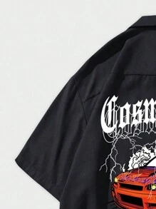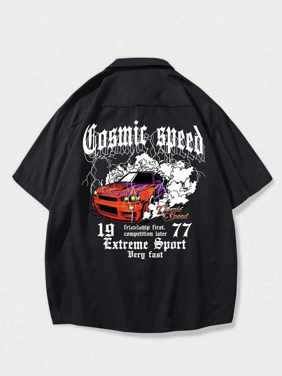 Street Life Herren Auto & Buchstabe Grafik Shirt