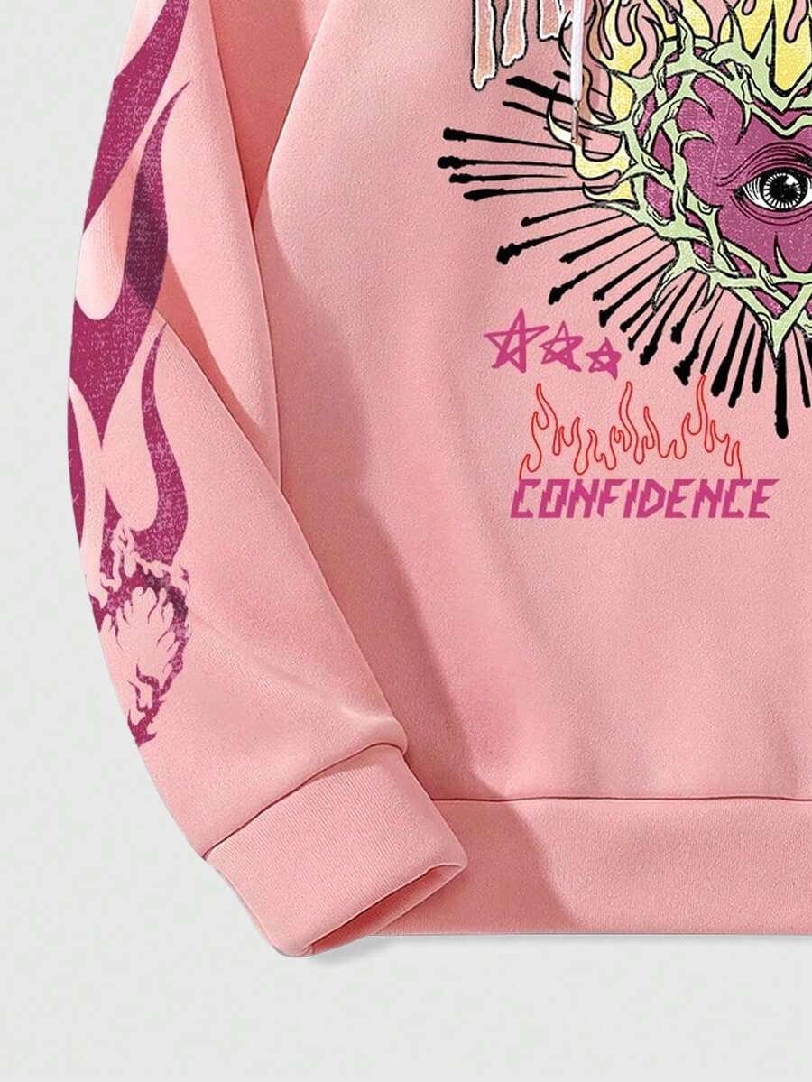 Street Life Herren Hoodie Mit Herz- Und Buchstabengrafik, Kordelzug Und Thermobeschichtung